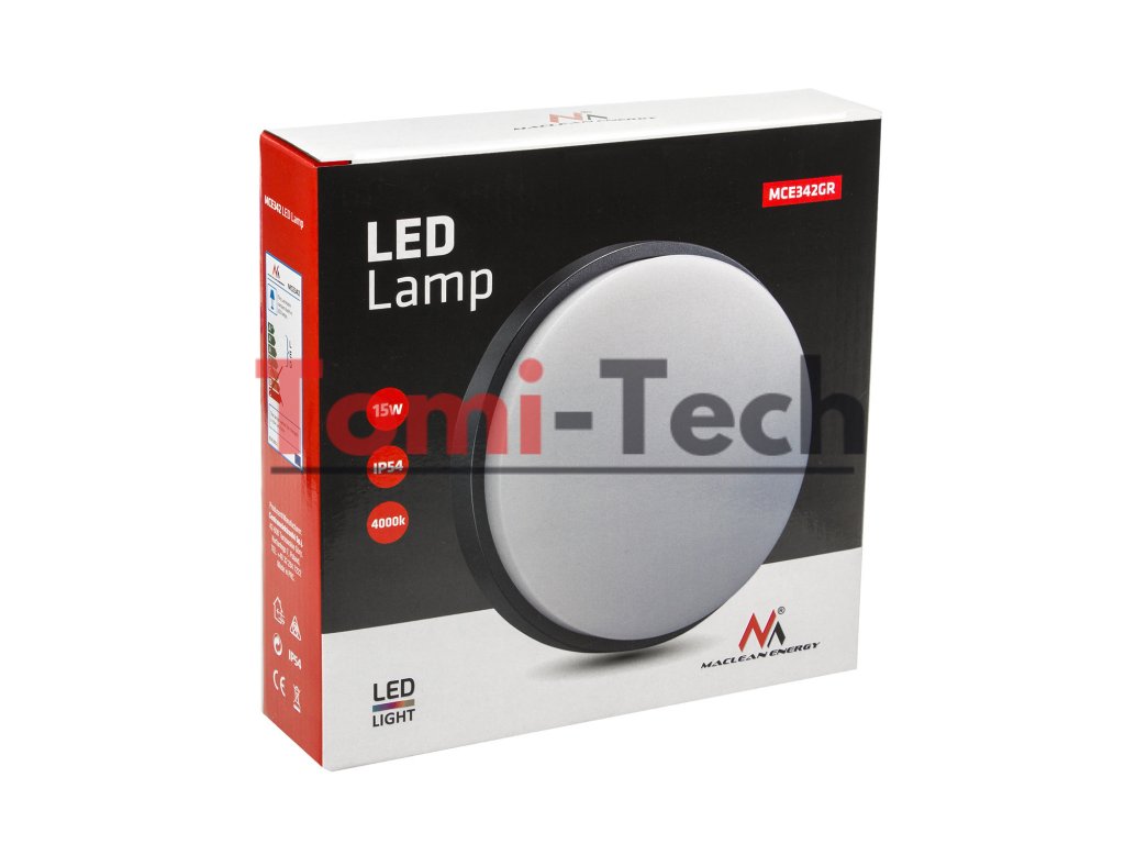 LED svietidlo Maclean, nástenné a stropné, sivá farba, GR 1100lm, 15W, IP54, farba svetla prírodná biela (4000K), MCE342