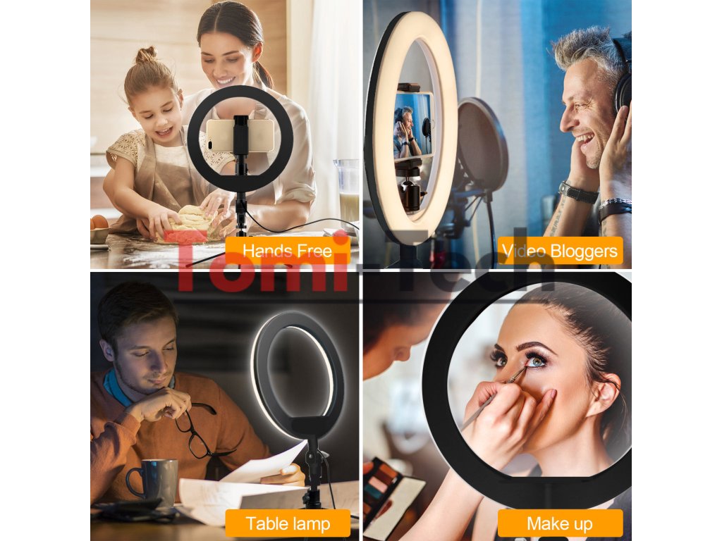 Toto vysoko kvalitné kruhové svetlo vybavené 160 LED diódami poskytuje rovnomerné osvetlenie pre fotenie a líčenie. Je tiež ideálne pre videokonferencie, nahrávanie podcastov a živé vysielania. V prípade potreby môžete lampu nastaviť do ľubovoľného uhla.