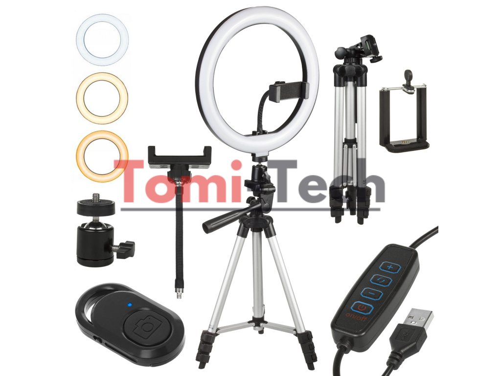 Maclean LED kruhové svetlo so stojanom, 1,1 m, 10", 12 W, samospúšť BT, teplota farieb 3000K-6500K, jas 10-100 %, MCE610