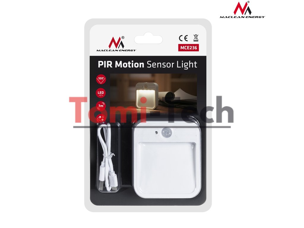 LED schodiskové svietidlo Maclean, s pohybovým senzorom, teplota 4000K, 3,7V/500mAh, 4 LED diódy, dosah 3-4m, MCE236
