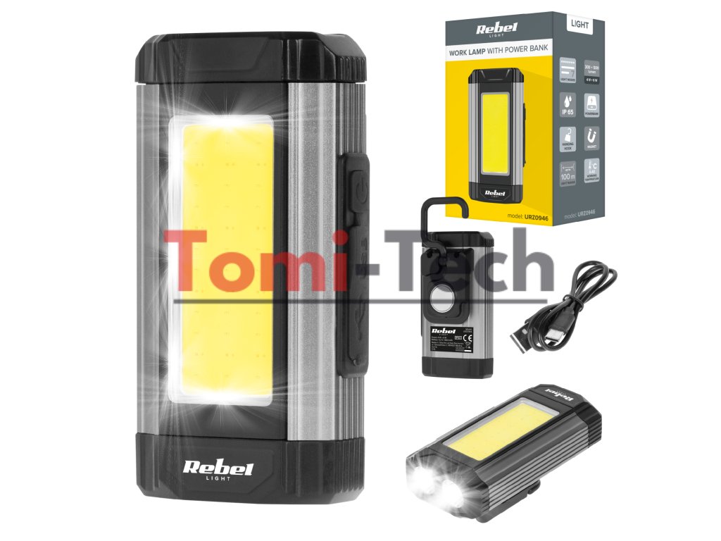 Rebel 15W LED dielenská lampa powerbanka 100 m IP65 magnetický háčik