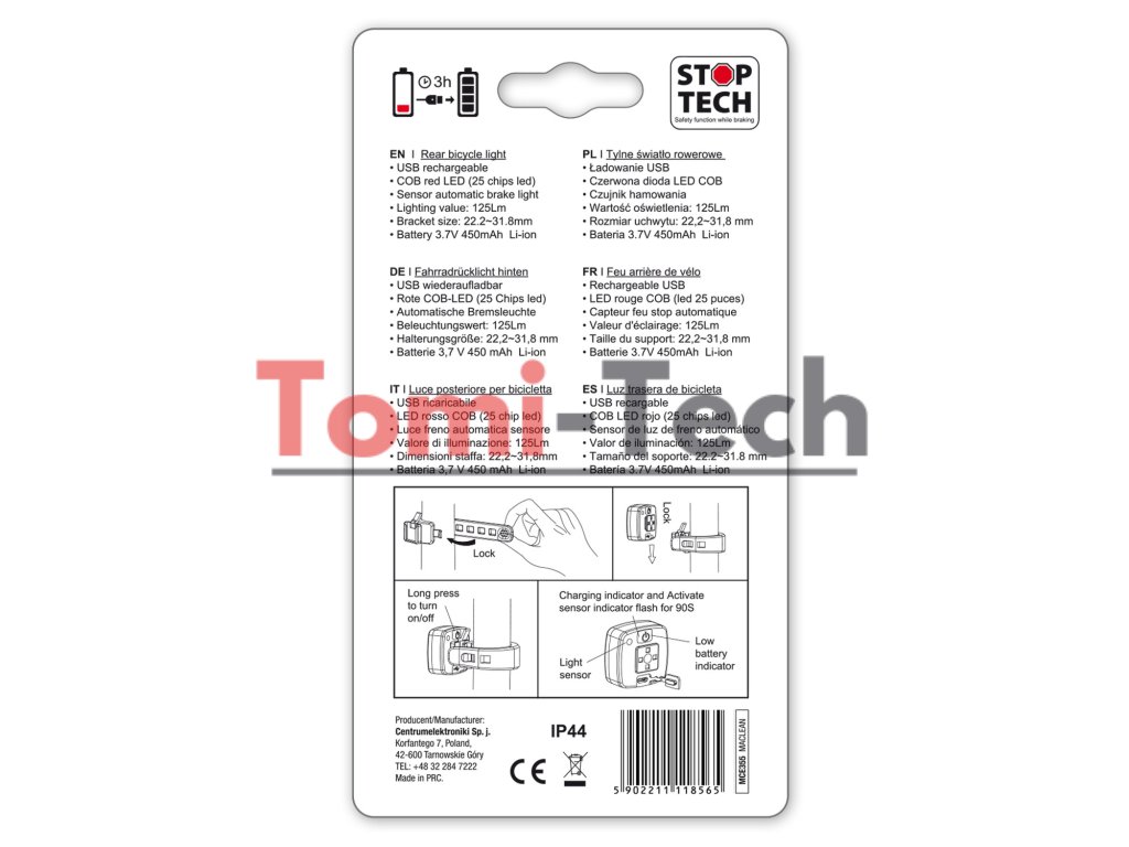 Vysokokvalitné zadné svetlo na bicykel s funkciou SMART, ktorá vďaka vstavaným senzorom vibrácií a súmraku aktivuje osvetlenie iba v prípade potreby. Navyše, brzdový senzor, aktívny v každom z troch prevádzkových režimov, zapína brzdové svetlo pri brzdení a zastavení.