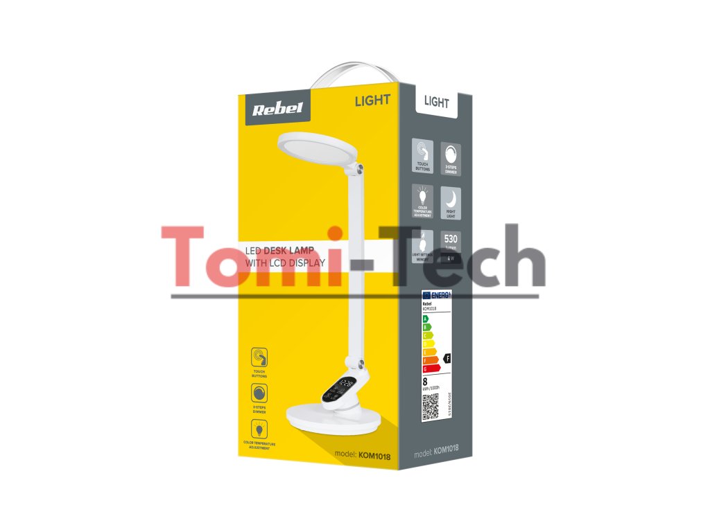 Stolná lampa Rebel KOM1018 s displejom je moderné zariadenie, ktoré kombinuje funkčnosť a estetiku a vytvára príjemnú atmosféru v detskej izbe. Bude perfektne fungovať na stole alebo nočnom stolíku a osvetlí priestor pri štúdiu alebo čítaní.