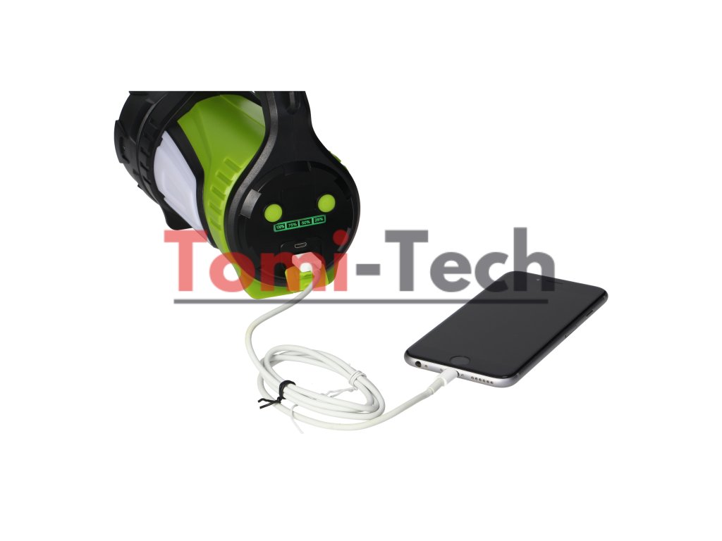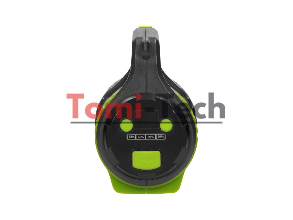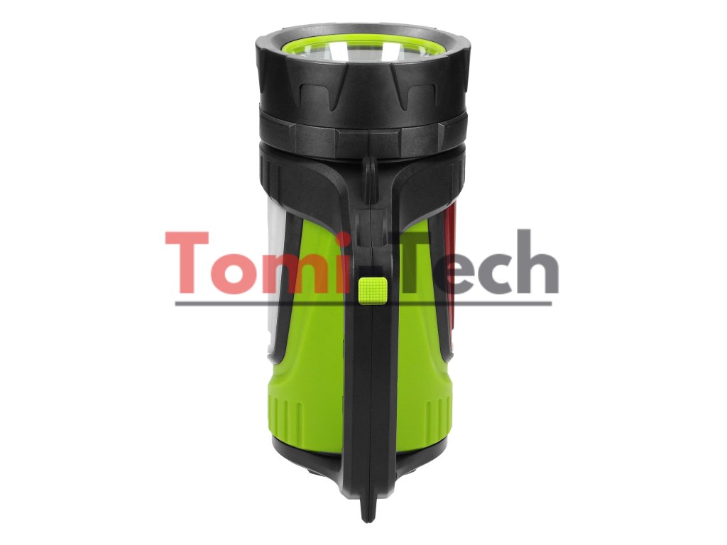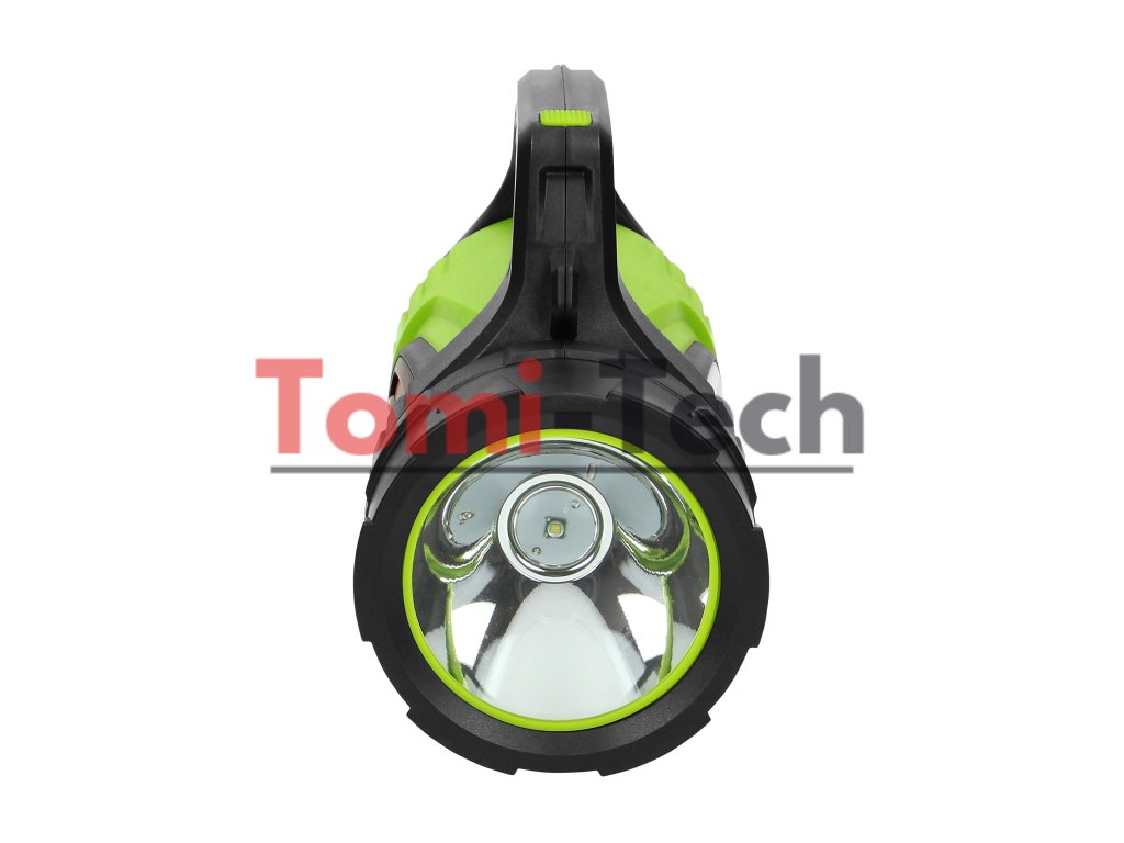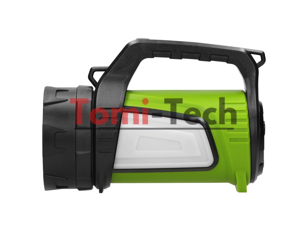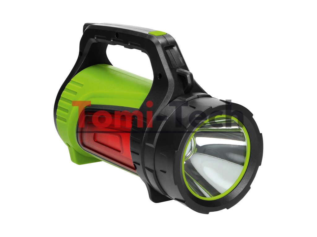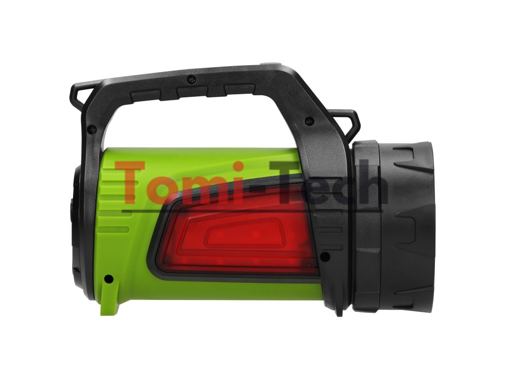 Toto nabíjateľné svetlometné svetlo s kapacitou 4000 mAh je určené na profesionálne alebo domáce použitie. Je vybavené tromi zdrojmi svetla: hlavným svetlometom s modernými 10W LED diódami, bočným svetelným panelom a svetelným panelom s červeným núdzovým svetlom. Svietidlo má tiež indikátor nabitia batérie a funkciu powerbanky (možno ho použiť na nabíjanie zariadení z svietidla). Má 5 režimov svietenia: hlavný svetlomet – diaľkové svetlo, stredné svetlo a blikajúci režim; ľavý bočný svetelný panel – diaľkové svetlo, stredné biele svetlo; a pravý bočný svetelný panel: diaľkové svetlo, blikajúci režim.Dodatočné parametre