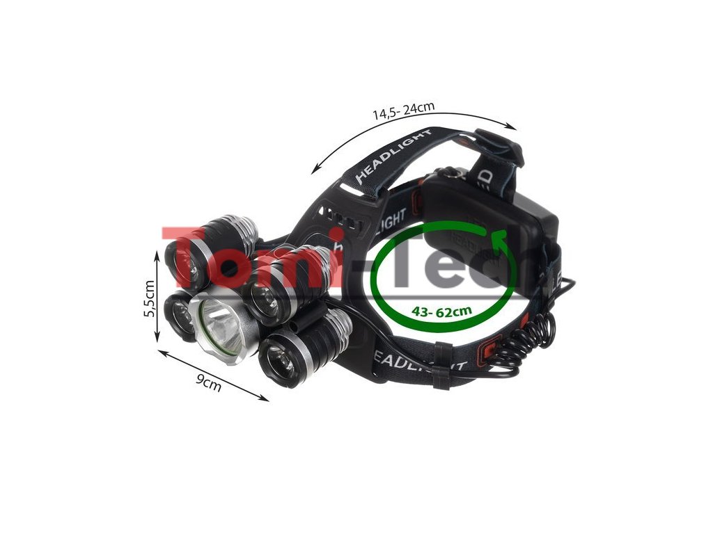 - ŠPECIFIKÁCIA? materiál: hliník, ostatné: ABS + polyester; 5 LED diód; 4 režimy svietenia; nastaviteľný popruh; batéria: 2 x 6800mAh; nastaviteľný 90-stupňový uhol sklonu; rozmery: 5,5/9 cm; obvod: 43-62 cm; dĺžka: 14,5-24 cm; hmotnosť: 0,245 kg; Hmotnosť v balení: 0,33 kg.