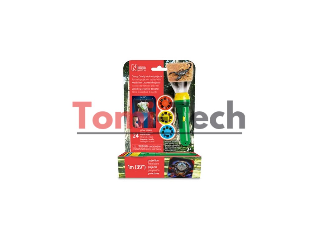Táto praktická LED baterka je zároveň fotoprojektorom, ktorý premieta farebné obrázky až do šírky jedného metra na steny a stropy. Obsahuje 24 desivých obrázkov chrobákov, švábov, pavúkov a mnohých ďalších druhov hmyzu. Baterka sa dodáva s 3 diapozitívmi s 24 farebnými fotografiami. Diapozitívy môžete jednoducho vymeniť potiahnutím plastovej chlopne a vložením vybraného disku. Potom disk otočíte a pozriete si fantastické farebné obrázky až do šírky jedného metra. Obrázky sa dajú ľahko zarovnať otáčaním šošovky. Môže sa použiť aj ako bežná baterka bez vodiacich líšt a je ideálna na umiestnenie na nočné stolíky, aby sa deti v noci cítili pohodlne. Meria 11 cm na dĺžku a približne 3,5 cm v priemere v najširšom bode.