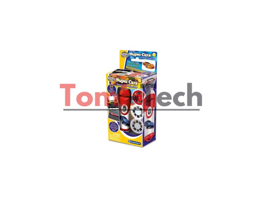 Táto fantastická baterka slúži aj ako projektor a premieta vzrušujúce obrázky superáut. Je to skvelý spoločník pred spaním, ktorý vám uľahčí zaspávanie. Baterka sa dodáva s tromi diskami s 24 farebnými obrázkami. Diapozitívy môžete jednoducho vymeniť potiahnutím plastovej chlopne a vložením disku podľa vlastného výberu. Potom disk otočíte a premietate fantastické obrázky až do šírky jedného metra. Obrázky sa dajú ľahko umiestniť otáčaním hlavy objektívu. Tento produkt sa dá použiť ako bežná baterka bez pripevnených diapozitívov a je ideálny na umiestnenie na nočných stolíkoch, aby sa deti v noci cítili pohodlne. Baterka meria 11 cm na dĺžku a približne 3,5 cm v priemere v najširšom bode.