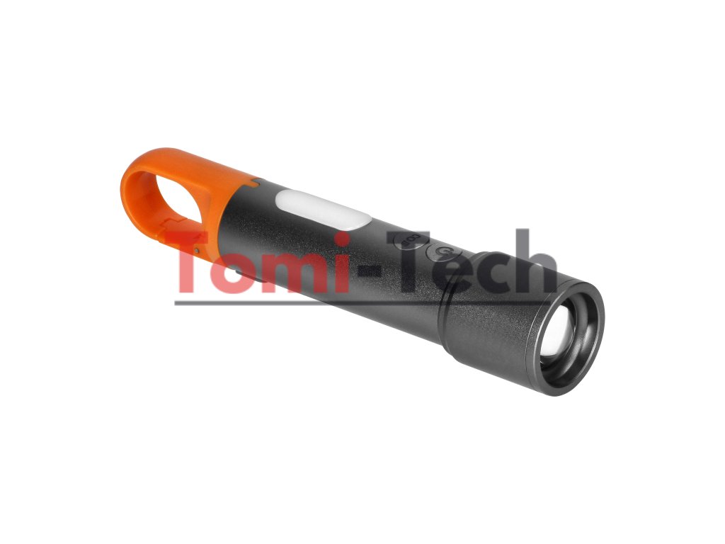 LED svietidlo SMD 10W + COB 2W, 350lm, 1200 mAh, funkcia zoomu, farebné krytky