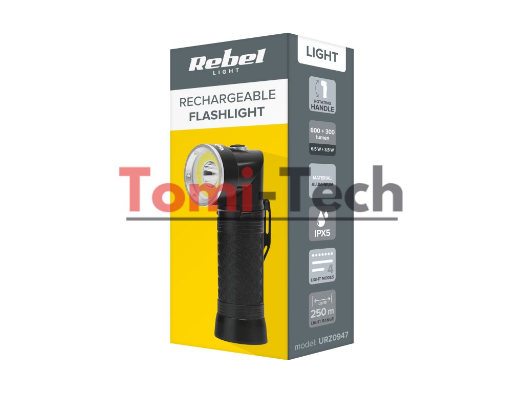 LED svietidlo Rebel je všestranné zariadenie vybavené pohyblivou hlavou a otočnou rukoväťou, ktorá zaisťuje maximálne pohodlie pri používaní. Svietidlo je vyrobené z odolného hliníka, je pevné a odolné voči poškodeniu.