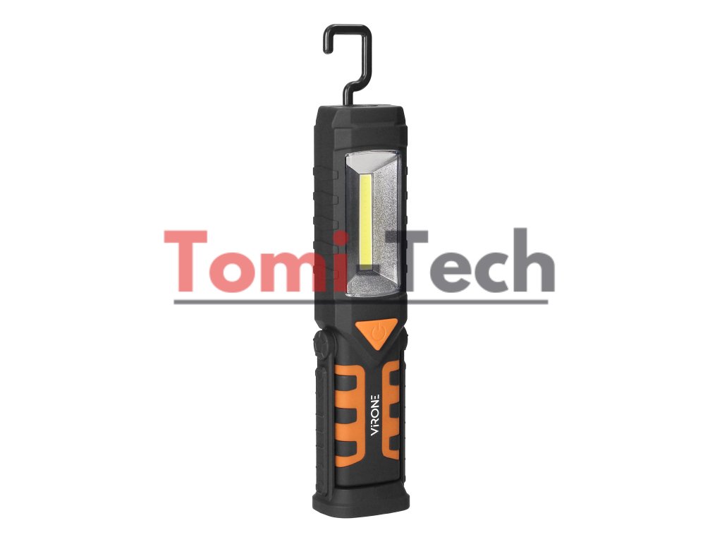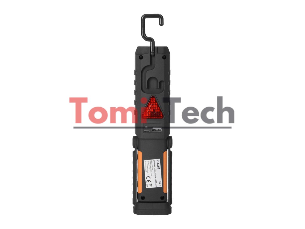 Táto praktická dielenská baterka so vstavanou batériou s kapacitou 1200 mAh je určená pre profesionálne aj domáce použitie. Je vybavená dvoma modernými LED diódami (3W COB predná LED dióda a 1W horná LED dióda). Baterka je vyrobená z odolného plastu odolného voči poškodeniu. Prepínač umiestnený na prednej strane krytu umožňuje pohodlné zapnutie/vypnutie alebo prepnutie na LED diódu v hornej časti baterky. Okrem toho je baterka vybavená červeným núdzovým svetlom, pohyblivou základňou so silným magnetom a hákom, ktorý vám umožňuje zavesiť baterku kamkoľvek a uvoľniť si ruky. Doplnková funkcia powerbanky umožňuje nabíjať zariadenia priamo z baterky.Dodatočné parametre
