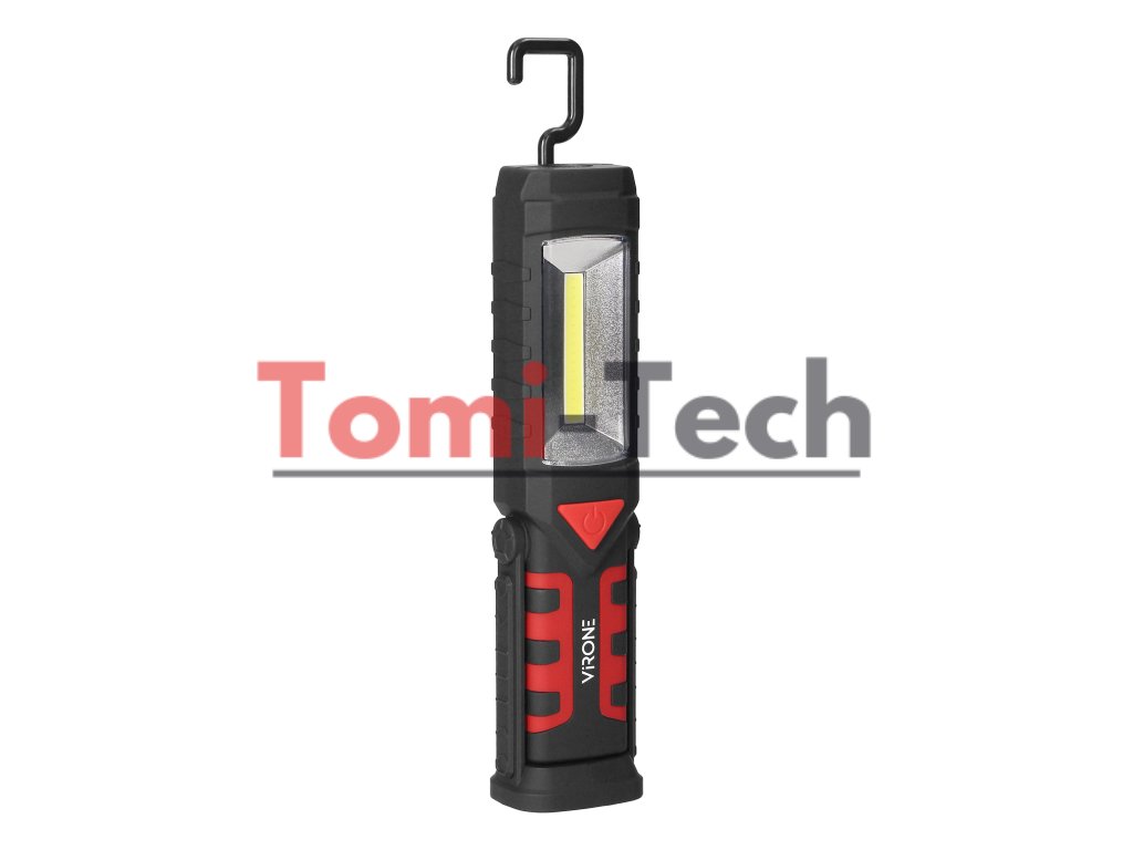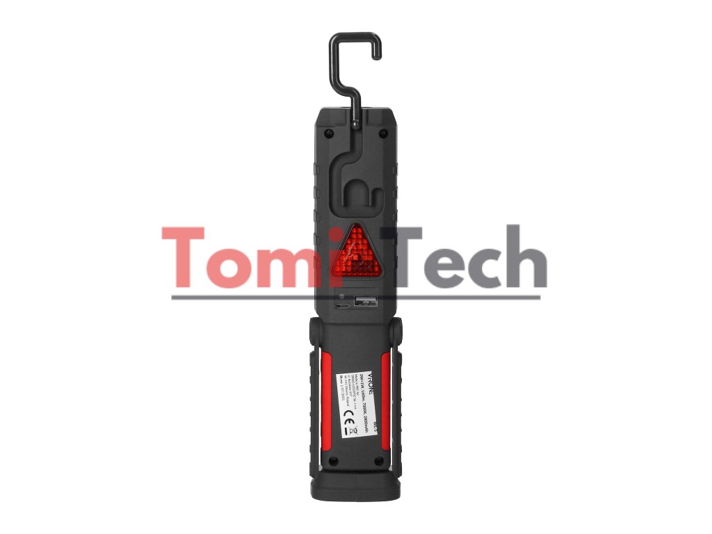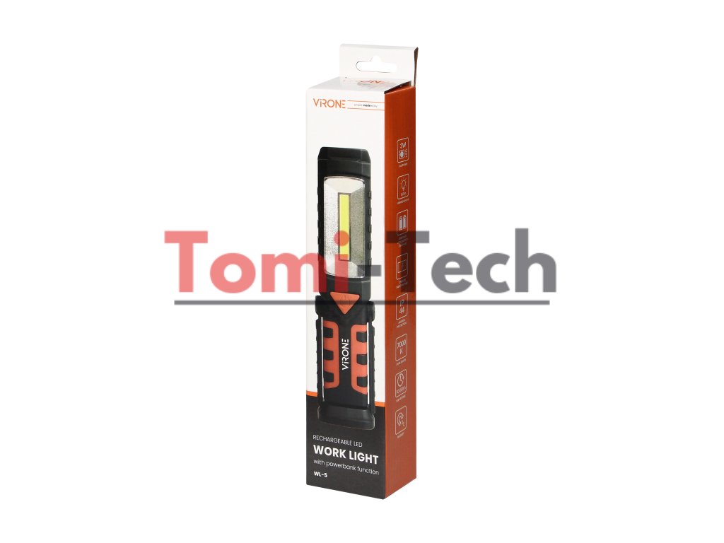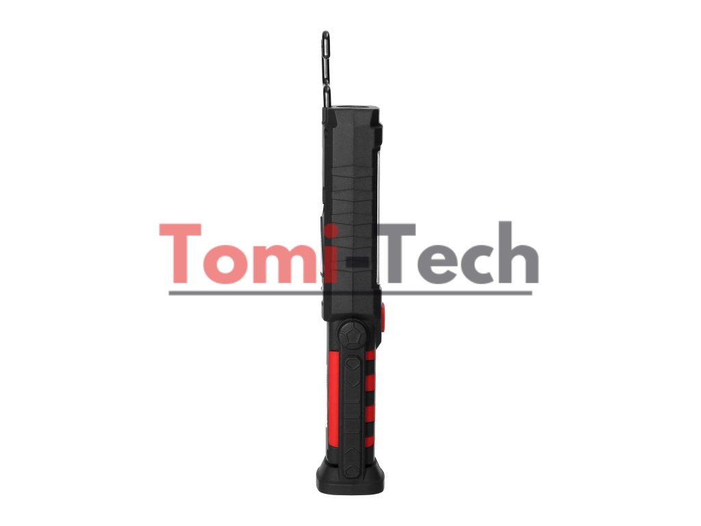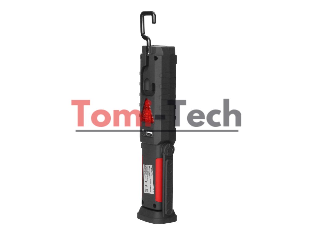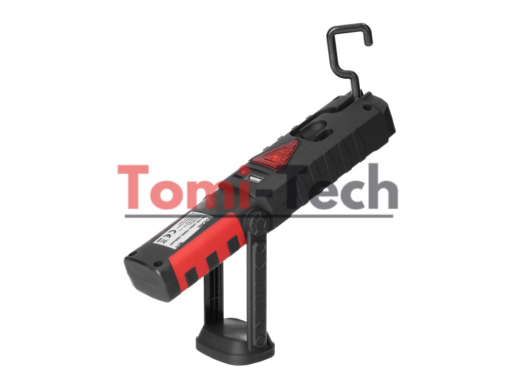 Táto praktická dielenská baterka so vstavanou batériou s kapacitou 2800 mAh je určená pre profesionálne aj domáce použitie. Je vybavená dvoma modernými LED diódami (3W COB predná LED dióda a 1W horná LED dióda). Baterka je vyrobená z odolného plastu odolného voči poškodeniu. Spínač umiestnený na prednej strane krytu umožňuje pohodlné zapnutie/vypnutie alebo prepnutie na LED diódu v hornej časti baterky. Okrem toho je baterka vybavená červeným núdzovým svetlom, pohyblivou základňou so silným magnetom a hákom, ktorý vám umožňuje zavesiť baterku kamkoľvek a uvoľniť si ruky. Doplnková funkcia powerbanky vám umožňuje nabíjať zariadenia priamo z baterky.Dodatočné parametre