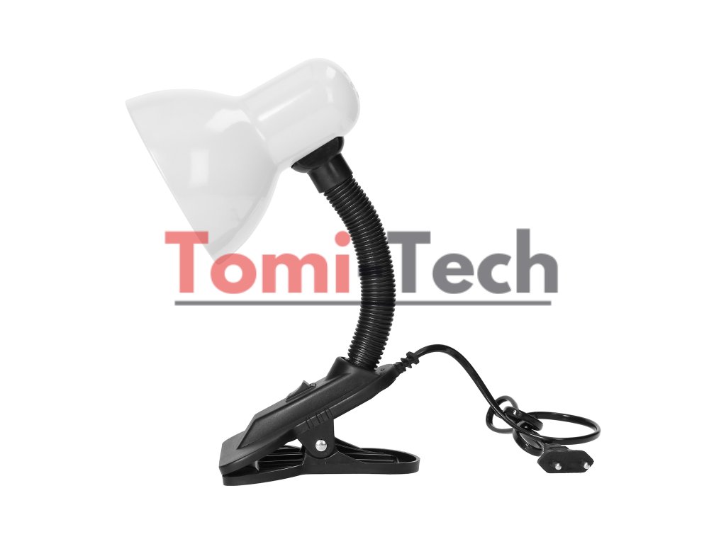 Praktická stolová lampa, dostupná v čiernej, bielej alebo červenej farbe. Integrovaný plastový klip umožňuje pripevnenie na rôzne povrchy, ako sú stoly, stoly alebo police. Tienidlo je vyrobené z ocele. Svetlo je možné nasmerovať pomocou flexibilného ramena. Vhodné pre žiarovky E27. Žiarovka nie je súčasťou balenia.Dodatočné parametre