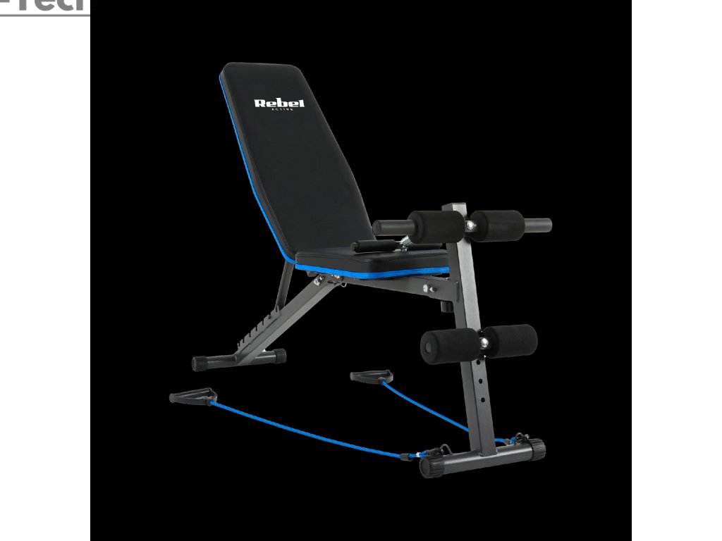 Šikmá tréningová lavica s aretáciou nôh a elastickými pásmi, REBEL ACTIVE