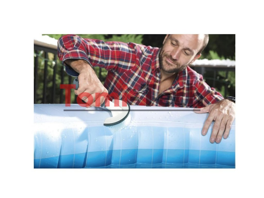 Sieťovina Lay-Z-Spa™: kryt chrániaci povrch vášho domáceho SPA, okrúhly tvar dokonale ladí s obrysmi interiéru jacuzzi, hlboká sieť na zachytávanie nečistôt, manuálne ovládanie alebo pripojenie na štandardnú teleskopickú tyč. Kefa Lay-Z-Spa™: nylonové štetiny a kryt komplexne chránia povrch SPA, manuálne ovládanie alebo pripojenie na štandardnú teleskopickú tyč.