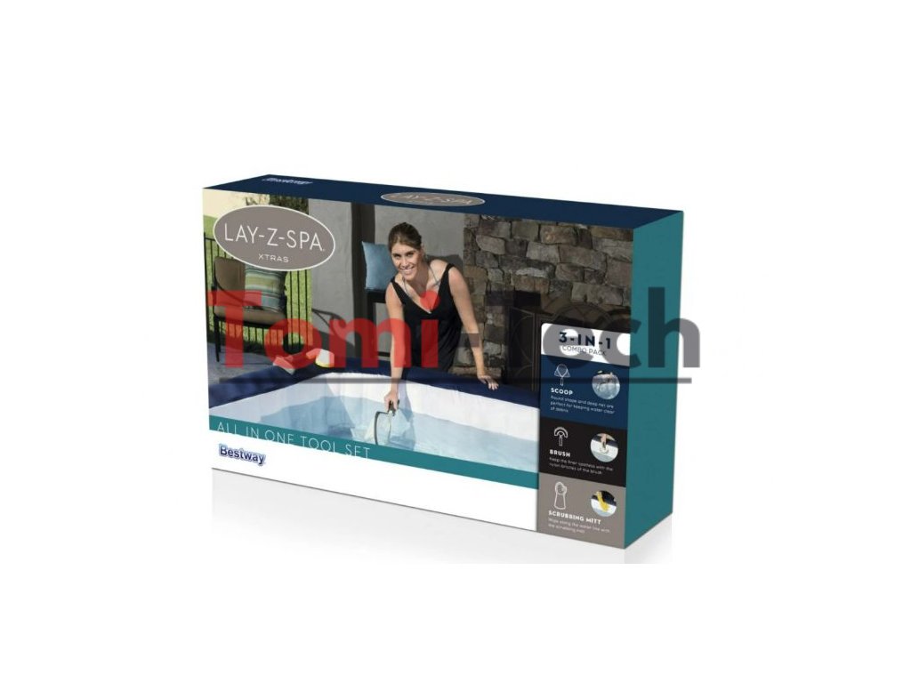 Súprava na čistenie jacuzzi obsahuje:sieťovina Lay-Z-Spa™, kefa Lay-Z-Spa™,Rukavice na čistenie Lay-Z-Spa™.