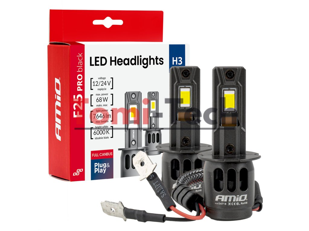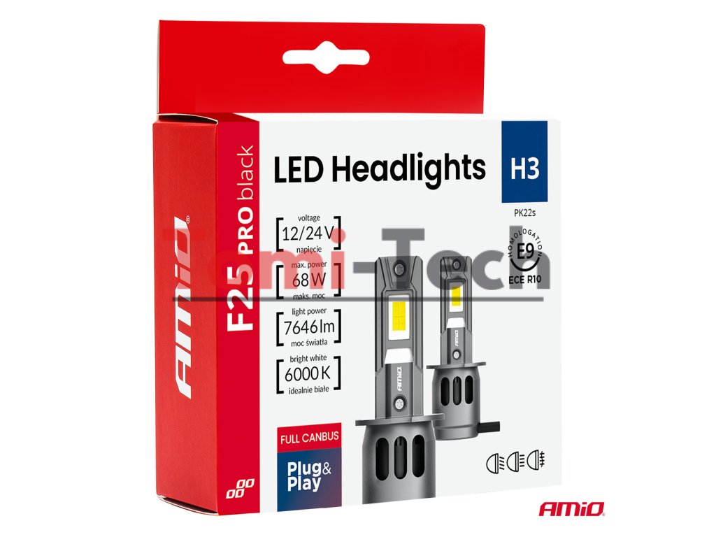 Žiarovky F25 PRO BLACK Edition H3 12/24V LED do svetlometov sú pokročilým zdrojom svetla určeným pre automobilové svetlomety. Sú vybavené systémom FULL CANBUS a zabezpečujú plnú kompatibilitu so systémami vozidiel vybavenými systémom monitorovania prepálených žiaroviek.