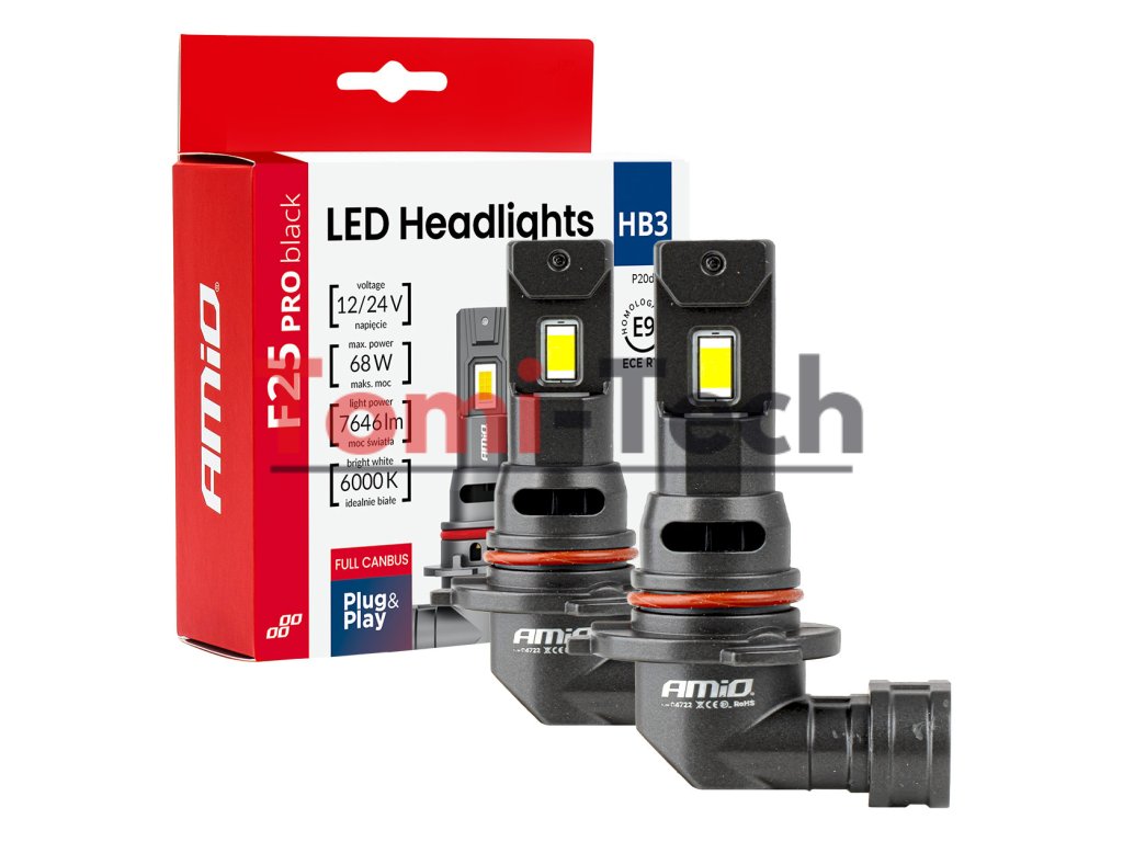 Svetlomety F25 PRO BLACK Edition HB3 12/24V LED sú pokročilým zdrojom svetla určeným pre automobilové svetlomety. Sú vybavené systémom FULL CANBUS a zabezpečujú plnú kompatibilitu so systémami vozidiel vybavenými systémom monitorovania vypálených žiaroviek.