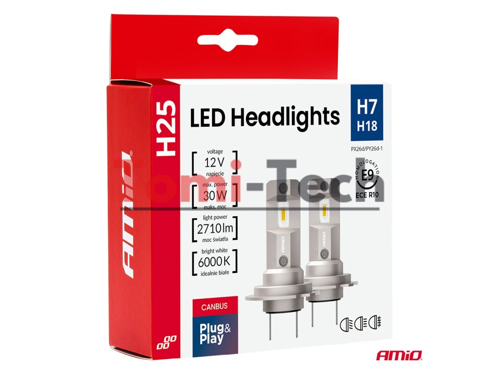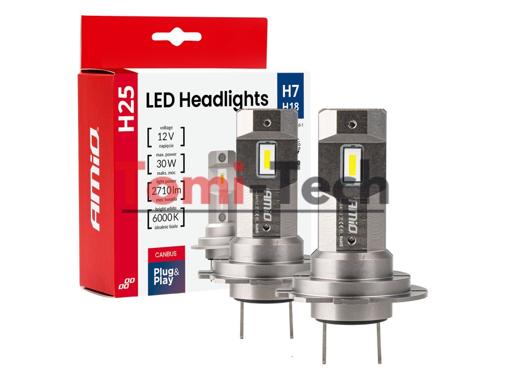 Autožiarovky H25 série H7, H18 CANBUS 12V 30W LED sú moderným zdrojom svetla s vysokou svetelnou účinnosťou 2710 lm a teplotou farby 6000K (studená biela) . Používajú CSP diódy novej generácie , ktoré zabezpečujú stabilný svetelný výkon a dlhú životnosť.