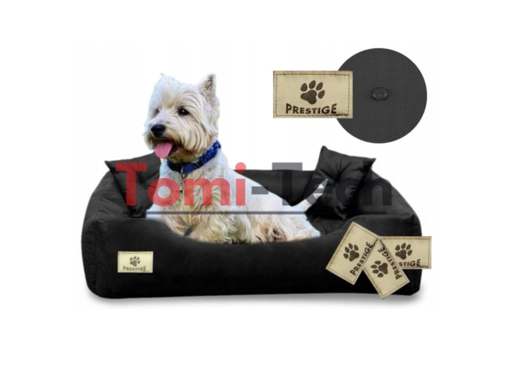 Spodná časť pelíšku je vyrobená z ľahko čistiteľného materiálu. Na prednej strane pelíšku je nášivka s nápisom Prestige.