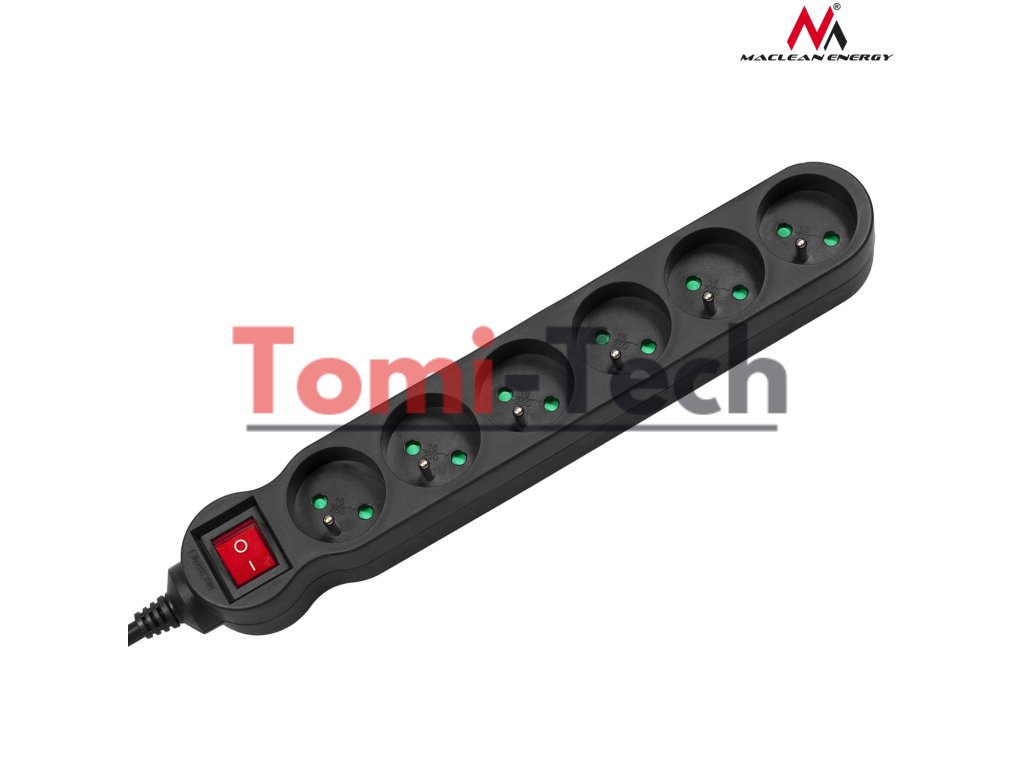 Maclean predlžovací kábel, 6 zásuviek, s vypínačom, čierny, 2300W, 1,5 m, MCE225