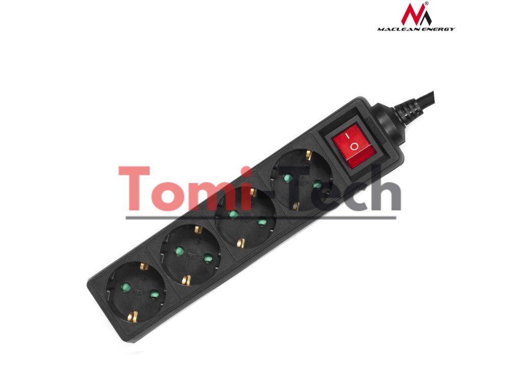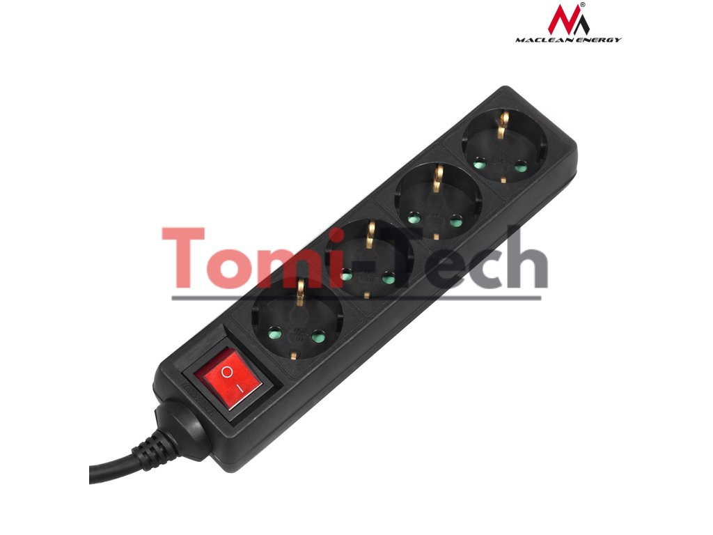 Predlžovací kábel so 4 zásuvkami a vypínačom 5 m, nemecký typ Maclean Energy MCE194G 3500W