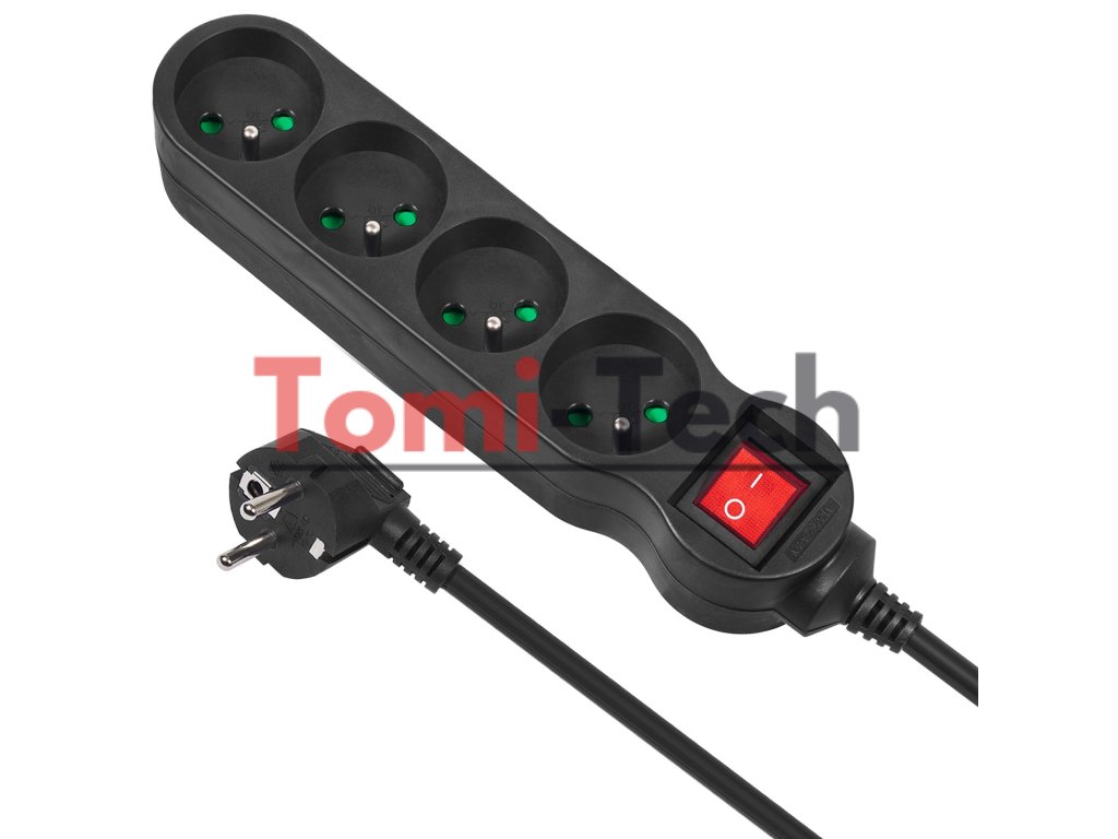 Predlžovacia zásuvka so 4 zásuvkami umožňuje súčasné pripojenie až štyroch plnohodnotných zástrčiek. Má detskú poistku a zabudovaný podsvietený vypínač.