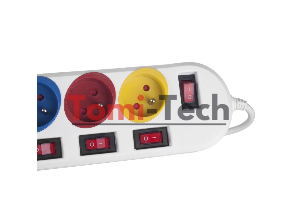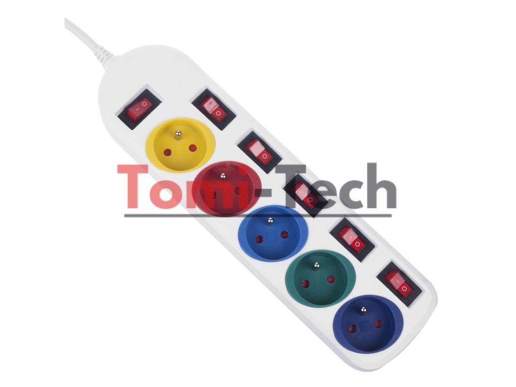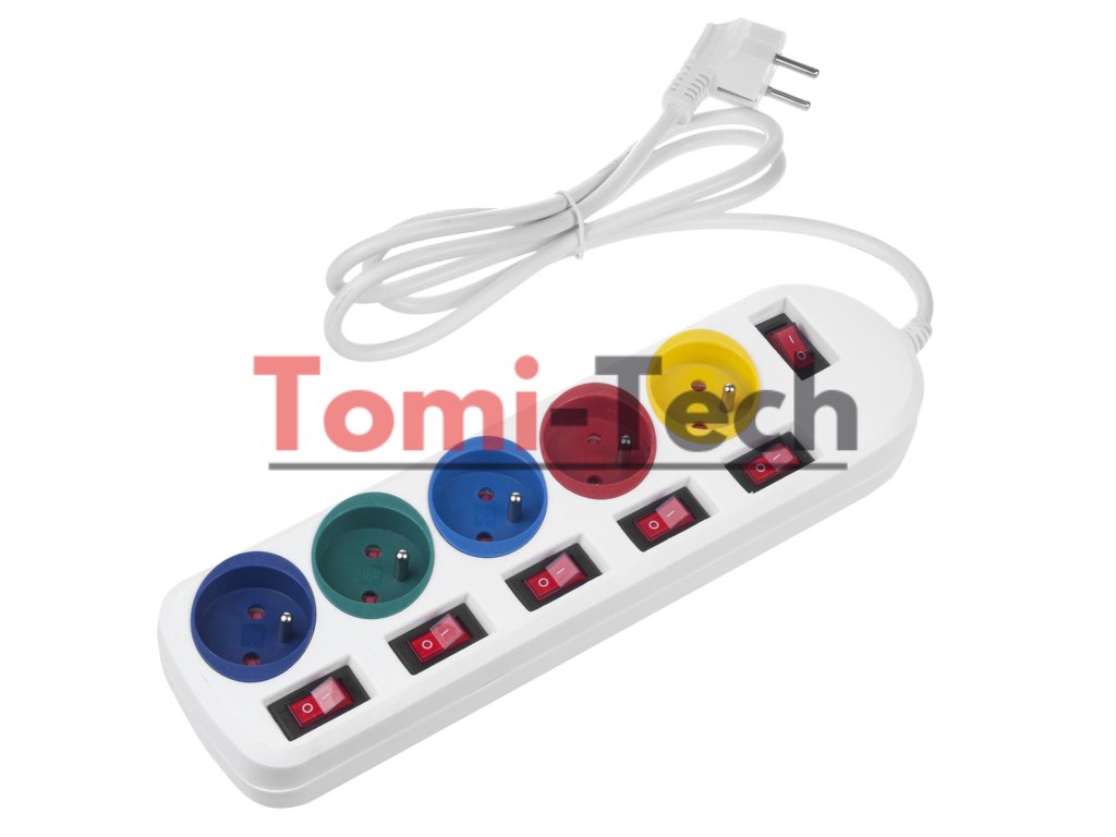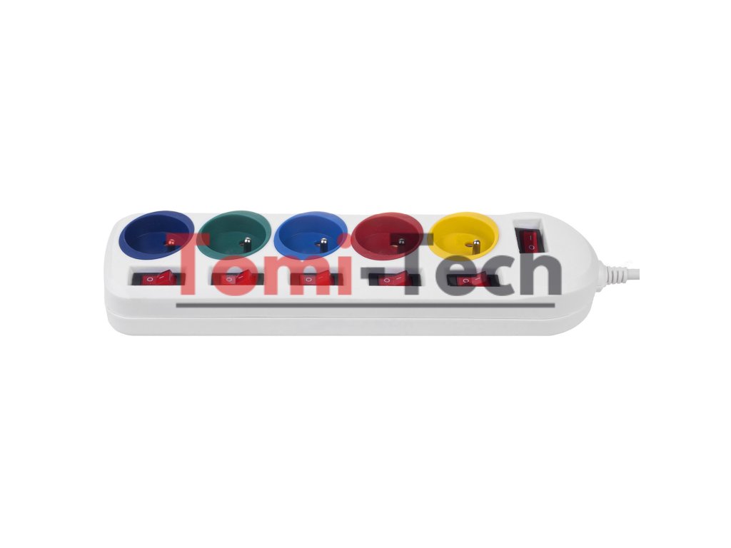 Maclean predlžovací kábel, 5-zásuvkový, s vypínačmi, 250VAC/10A, 1,5 m, MCE204 M/W