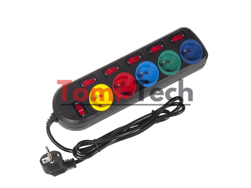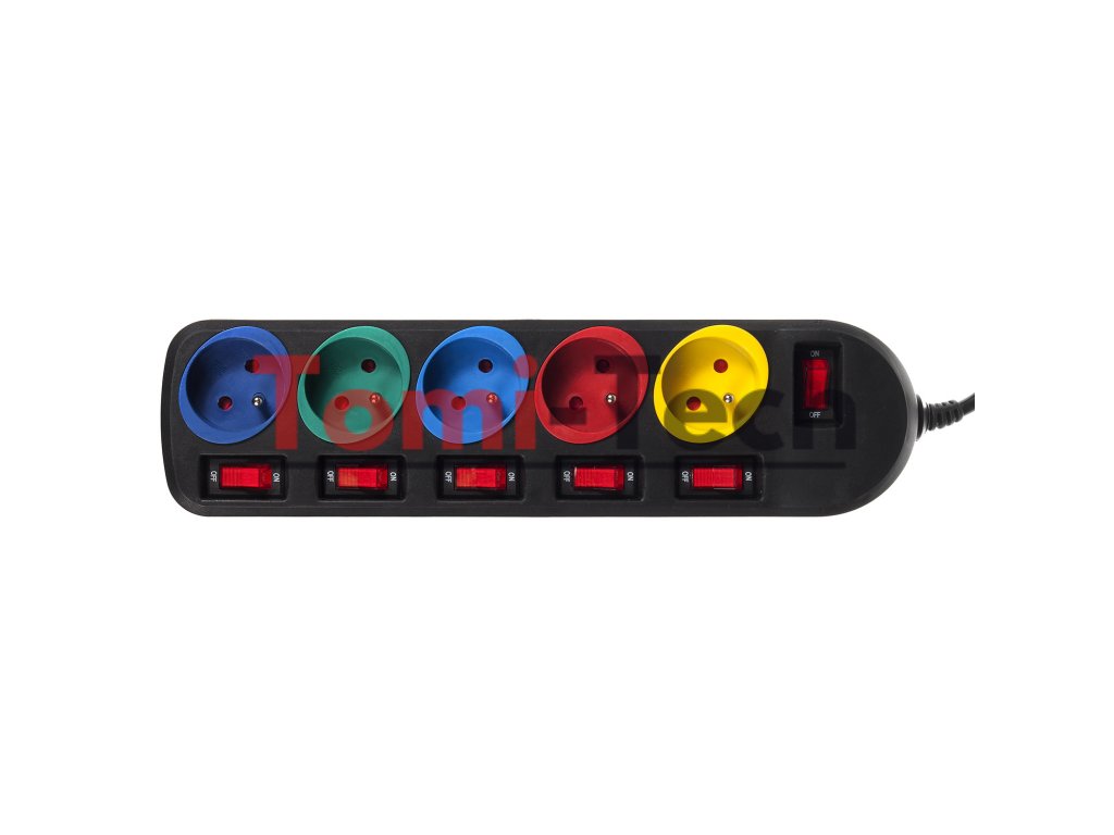 Maclean predlžovací kábel, 5-zásuvkový, s vypínačmi, viacfarebný, 250VAC/10A, 1,5 m, MCE204M