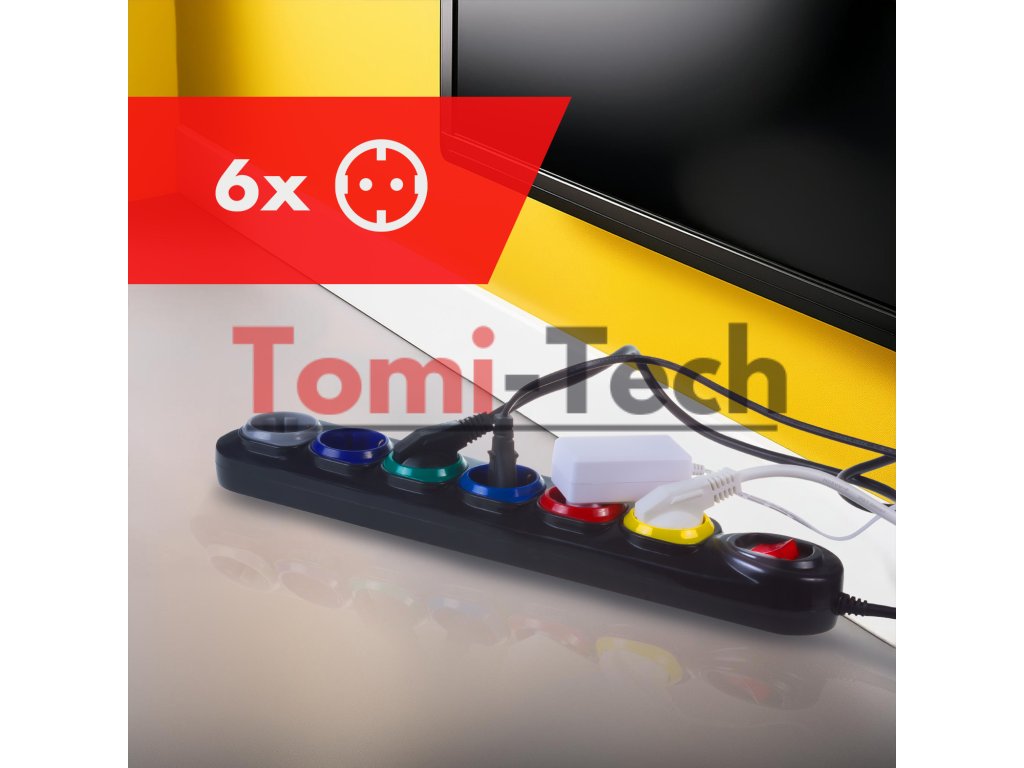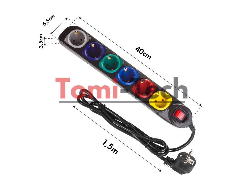 Vlastnosti- 6 farebných zásuviek s uzemnením