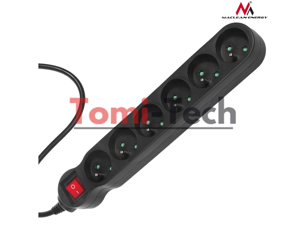 Maclean predlžovací kábel, 6-zásuvkový, s vypínačom, čierny, 2300 W, 3 m, MCE187