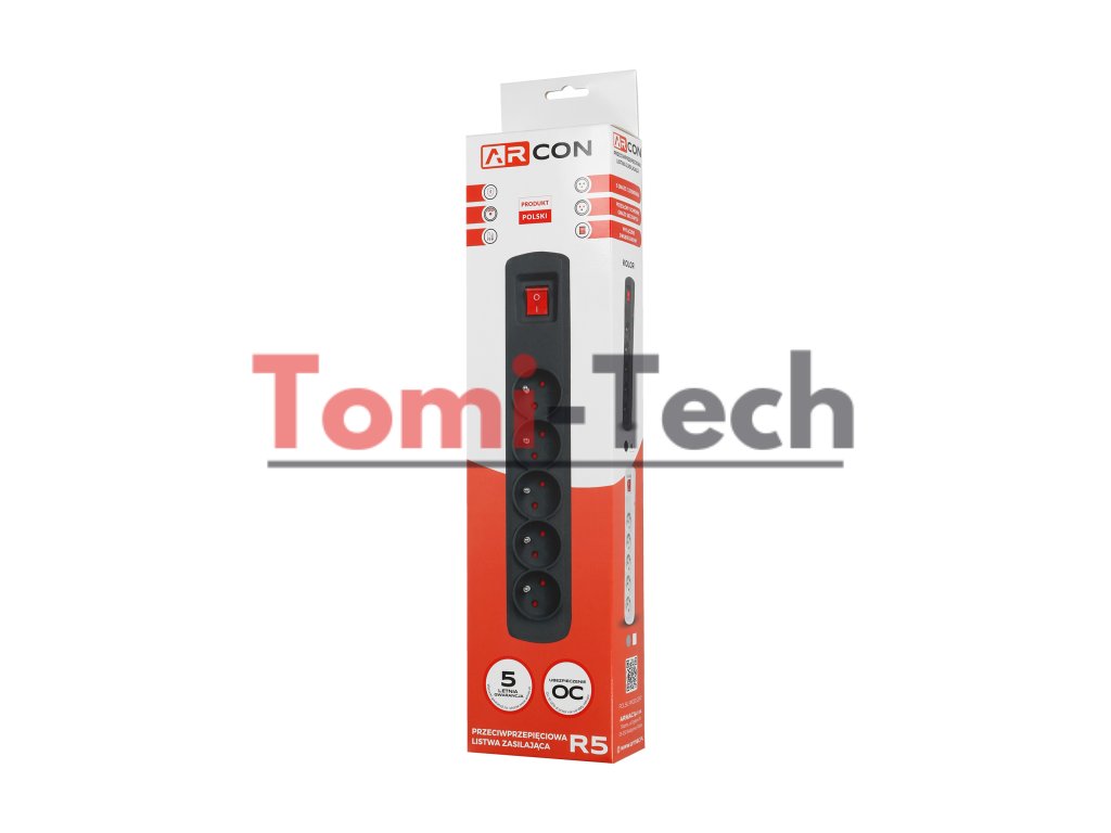 Produkt je vybavený špeciálnym systémom ochrany proti skratu a prepätiu. Časovo oneskorená automatická poistka, ktorá nevyžaduje výmenu, poskytuje vynikajúcu ochranu. Okrem toho má pásik zabudované ochranné kryty pre zásuvky. Vysokokvalitný varistor s rýchlou dobou odozvy menej ako 25 nanosekúnd a vysokou hodnotou absorpcie impulzov 6000 A chráni zariadenie pred nebezpečnými prepätiami. R5 nezaberá veľa miesta a v kombinácii s možnosťou montáže do zeme je univerzálnym produktom so širokou škálou použitia. Chráni elektronické zariadenia doma aj v kancelárii pred skratmi a nebezpečnými prepätiami. Obsahuje 5 uzemnených zásuviek, rýchlu automatickú poistku, systém ochrany proti prepätiu a ochranné kryty pre zásuvky.Dodatočné parametre
