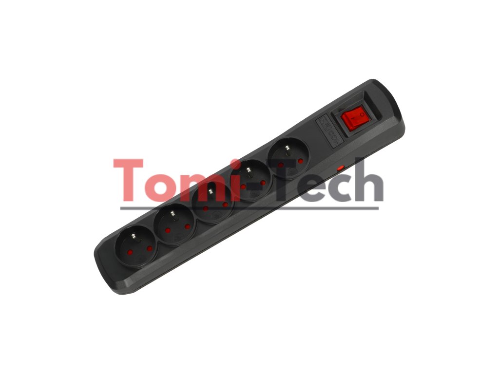 Produkt je vybavený špeciálnym systémom ochrany proti skratu a prepätiu. Časovo oneskorená automatická poistka, ktorá nevyžaduje výmenu, poskytuje vynikajúcu ochranu. Okrem toho má pásik zabudované ochranné kryty pre zásuvky. Vysokokvalitný varistor s rýchlou dobou odozvy menej ako 25 nanosekúnd a vysokou hodnotou absorpcie impulzov 6000 A chráni zariadenie pred nebezpečnými prepätiami. R5 nezaberá veľa miesta a v kombinácii s možnosťou montáže do zeme je univerzálnym produktom so širokou škálou použitia. Chráni elektronické zariadenia doma aj v kancelárii pred skratmi a nebezpečnými prepätiami. Obsahuje 5 uzemnených zásuviek, rýchlu automatickú poistku, systém ochrany proti prepätiu a ochranné kryty pre zásuvky.Dodatočné parametre