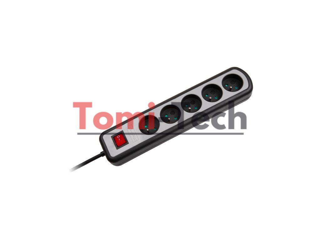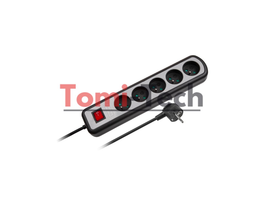 Rebel 5-zásuvkový predlžovací kábel s vypínačom, 5 m (3x1,5 mm)