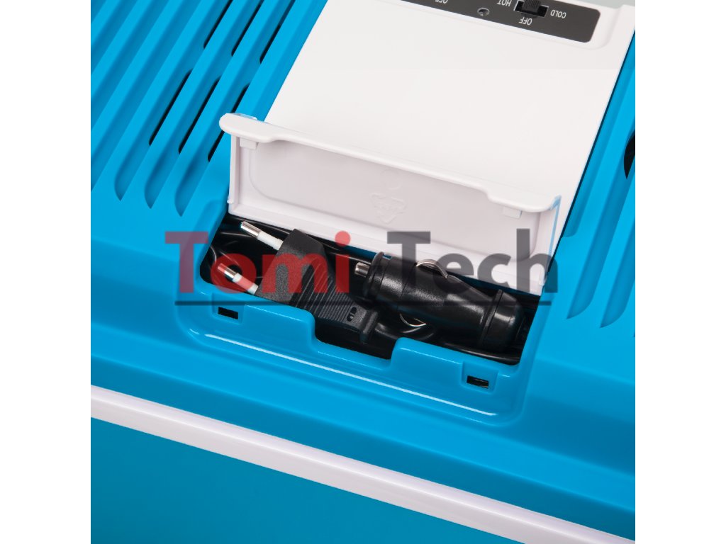 Tento kompaktný chladič je vybavený konektormi, ktoré vám umožňujú pripojiť ho k zásuvke zapaľovača v aute aj k štandardnej zásuvke. Vďaka tomu si môžete potraviny skladovať vo vhodných podmienkach bez ohľadu na to, či cestujete autom, kempujete v odľahlej oblasti alebo bývate v hoteli.