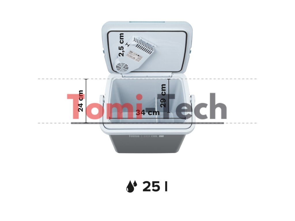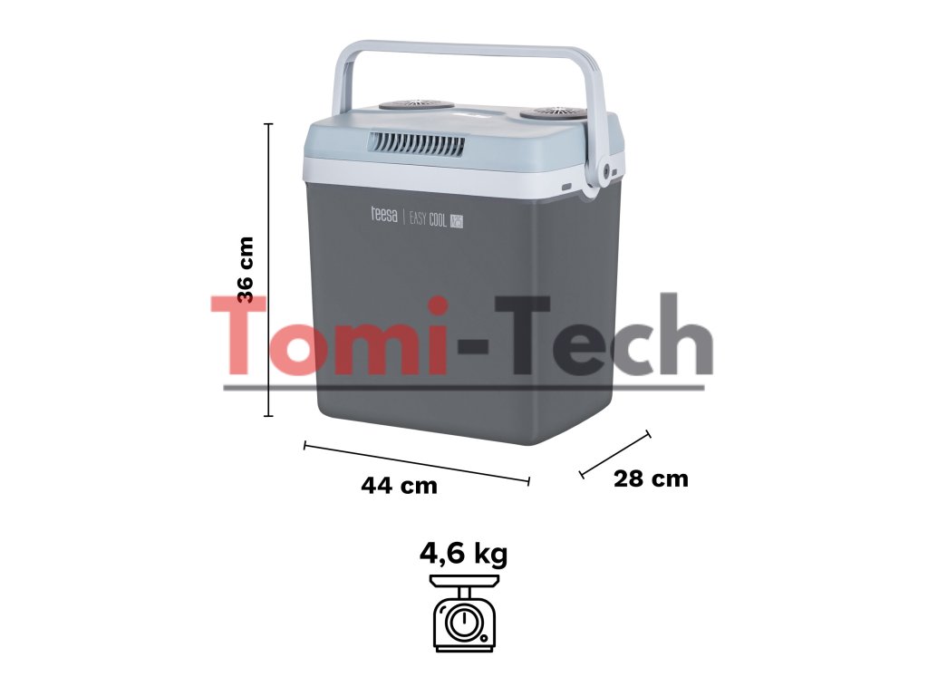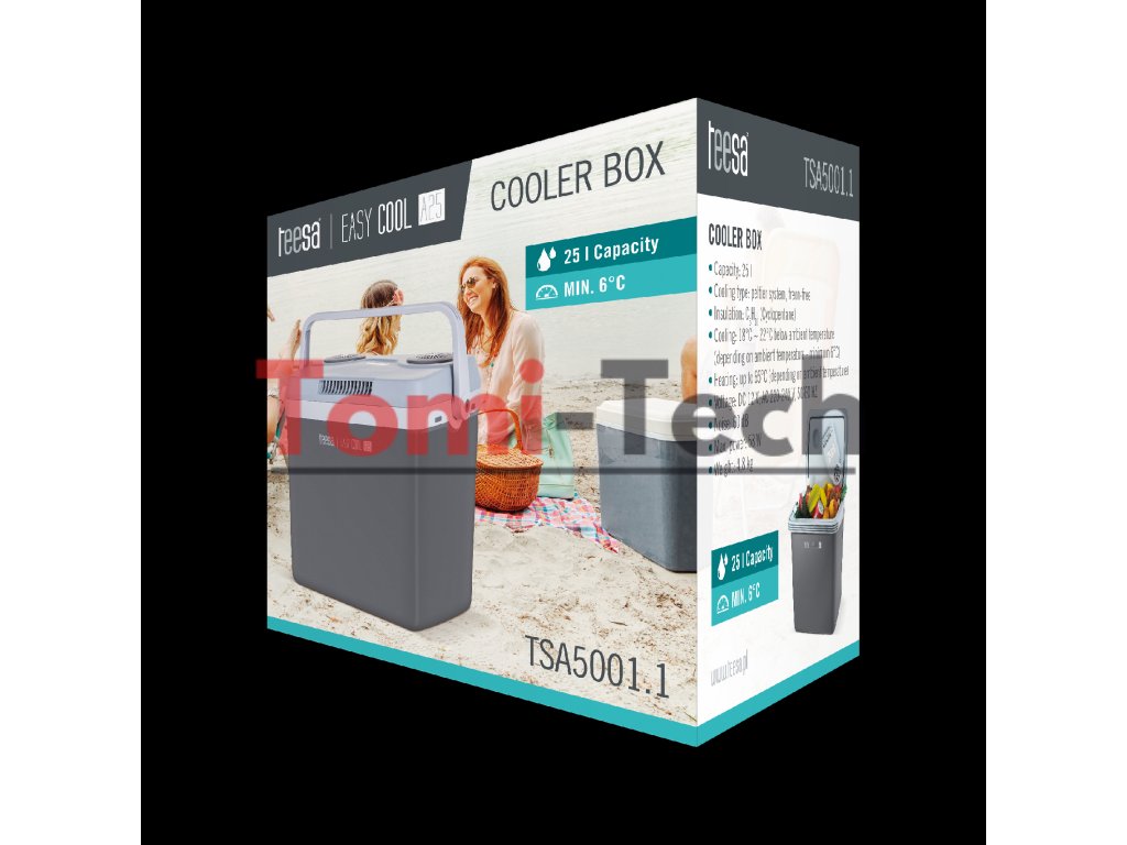 Nemusíte sa pýtať, ako turistická chladnička funguje a či je bezpečná? Teesa EASY COOL A25 je založená na termoelektrickom systéme Peltierových článkov, ktorý neobsahuje škodlivé freóny. Veľmi pevnú konštrukciu zariadenia dopĺňa estetický kryt v odtieňoch sivej. Praktickou výhodou je možnosť napájania z 230V siete alebo zo zásuvky zapaľovača v aute.