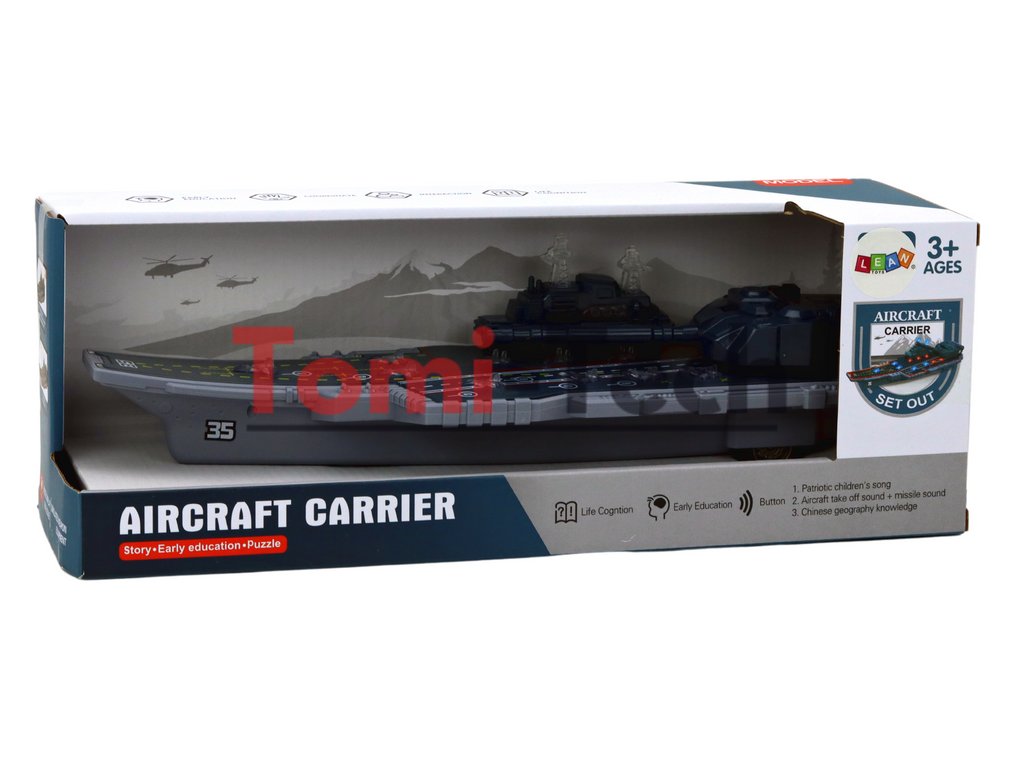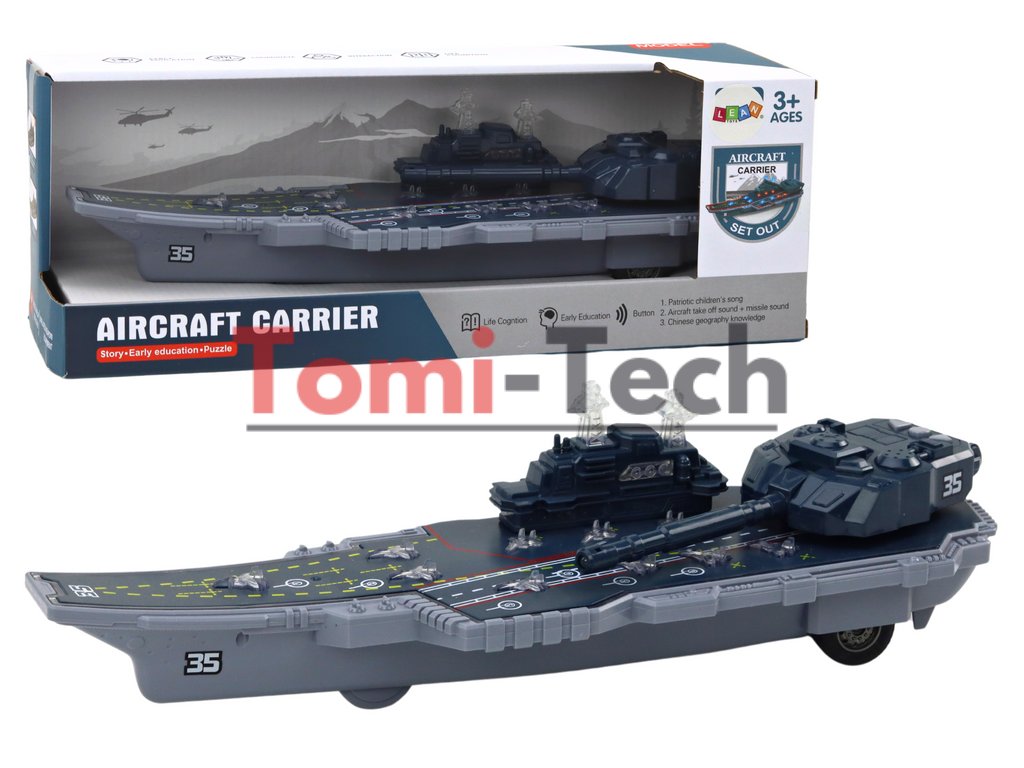 Keď sú melódie a zvuky aktivované, hračka aktivuje aj svetelné efekty, vďaka čomu je hra ešte realistickejšia a vzrušujúcejšia. Lietadlová loď má 4 kolesá, vďaka čomu sa stáva nielen miestom na hranie, ale aj simulátorom, ktorý stimuluje detskú fantáziu a rozvíja ich záujem o svet letectva a armády. Je to nezabudnuteľné dobrodružstvo pre každého malého pilota alebo námorníka, ktorý sa chce na palube lietadlovej lode cítiť ako skutočný hrdina.