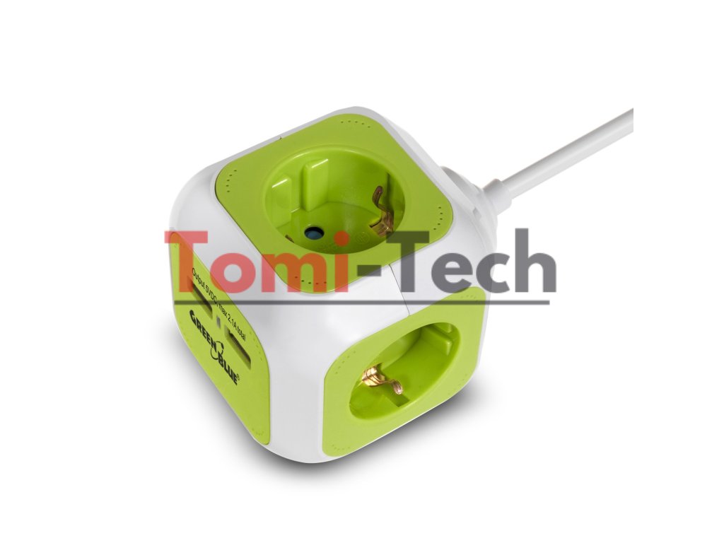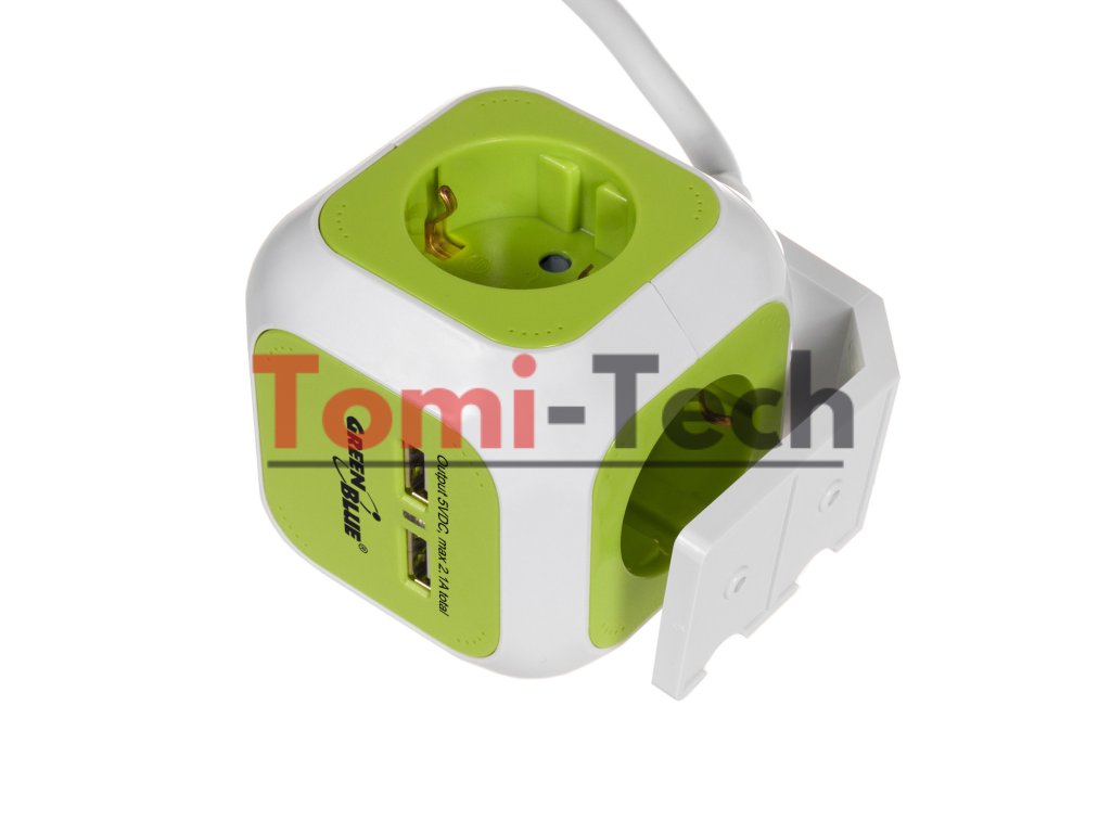 Štvornásobná zásuvka MagicCube, 2 USB porty 1,4 m zelená modrá GB118G nemecká verzia
