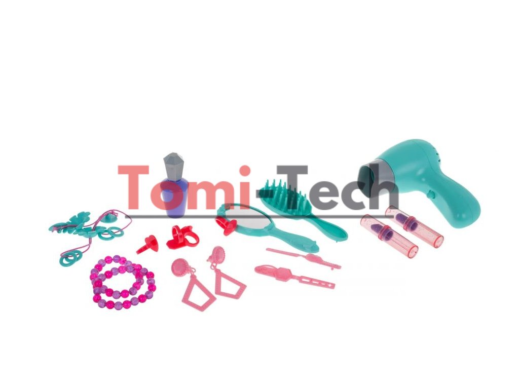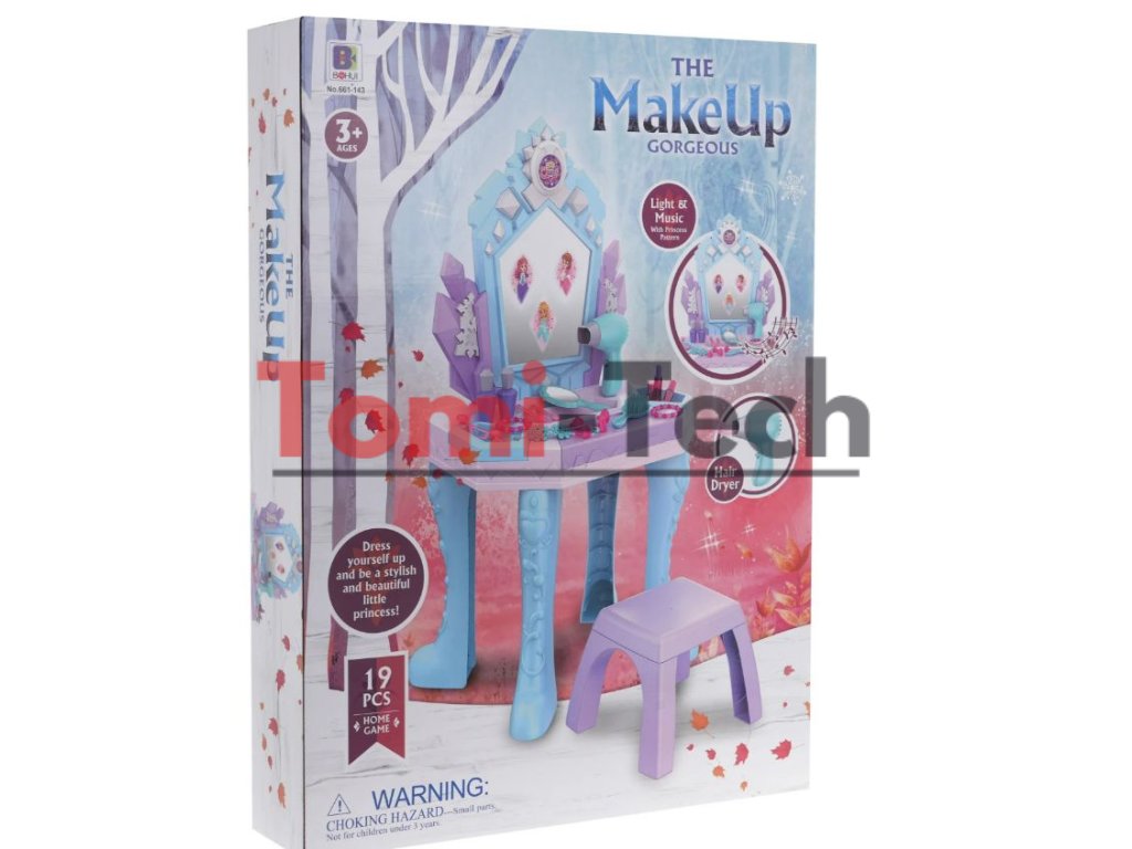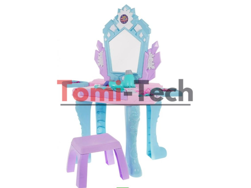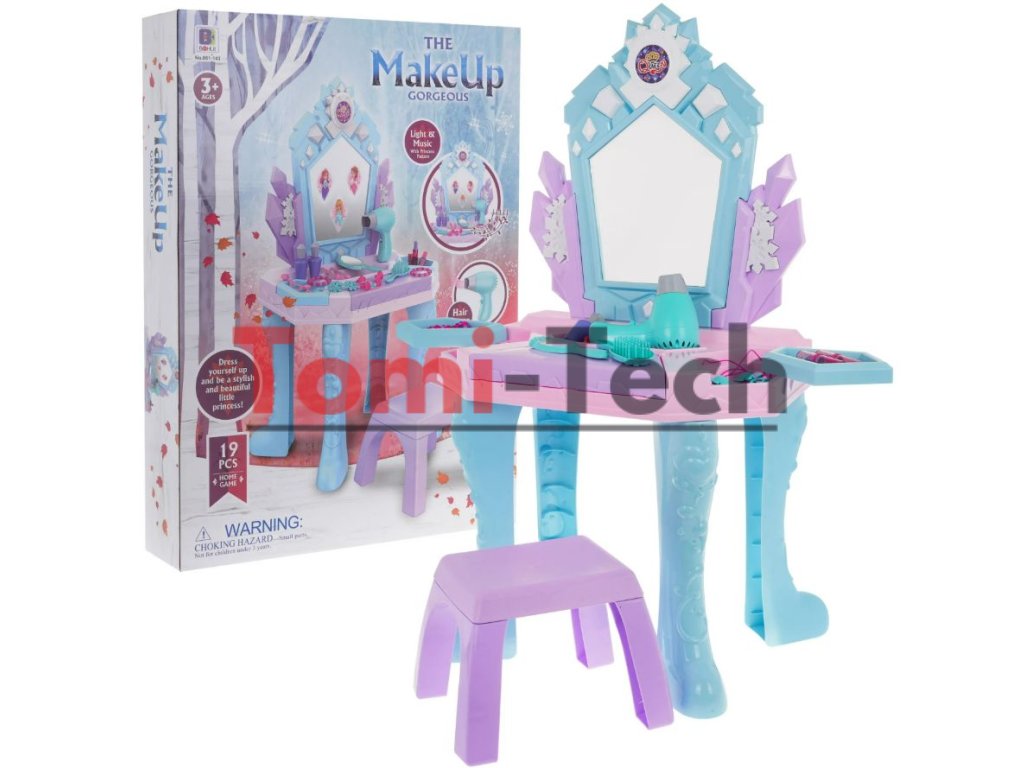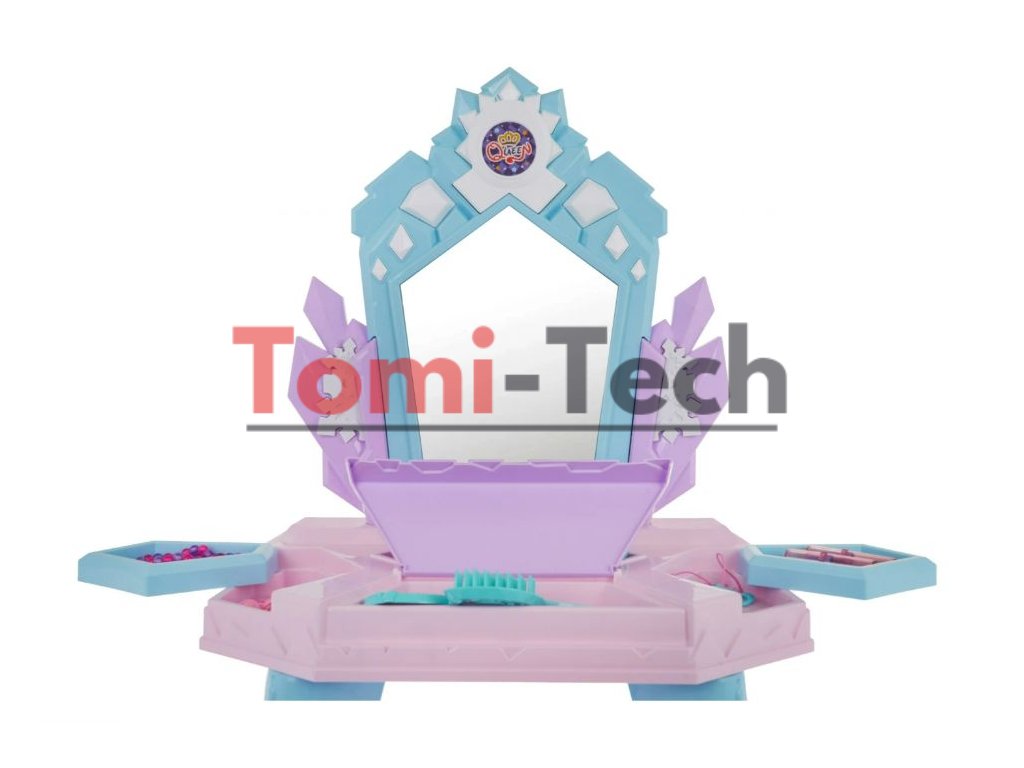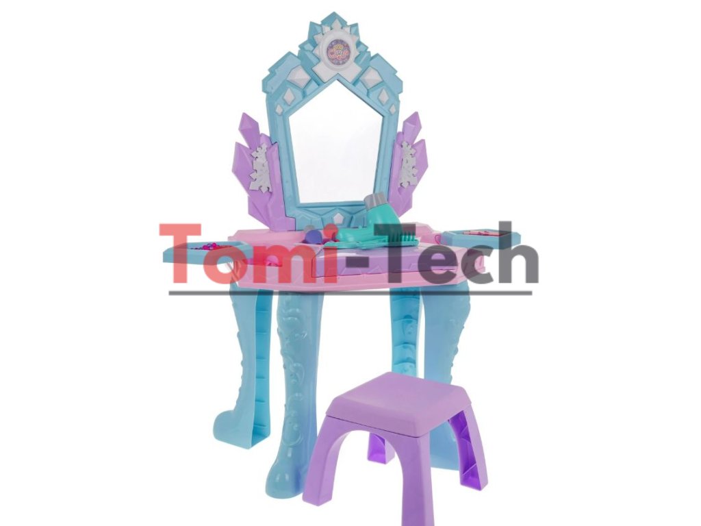 Sada obsahuje toaletný stolík s taburetom a falošnú kozmetiku a šperky. Nechýba ani funkčný fén s ľahkým prúdením vzduchu a zvukmi sušenia. Toaletný stolík má veľké zrkadlo, na ktorom sa po stlačení tlačidla v spodnej časti zrkadla objavia princezné za sprievodu veselých melódií. Na prednej a bočnej strane toaletného stolíka sú priehradky na kozmetiku a šperky.