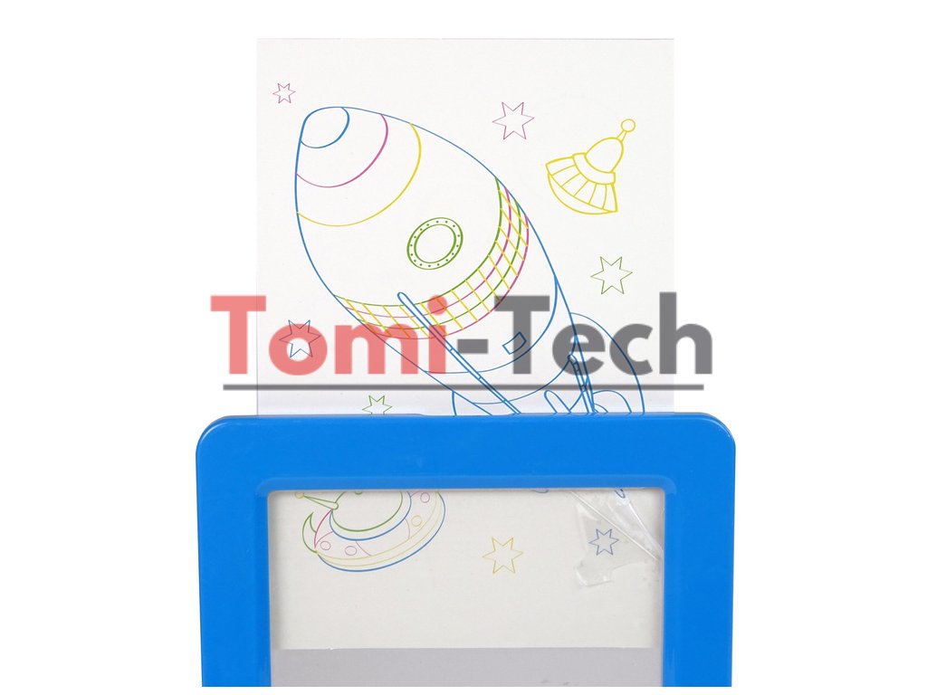 Toto je zábavná, rozjasňujúca kresliaca podložka, ktorá osvetlí kresbu vášho dieťaťa. Unikátna obrazovka je krištáľovo čistá, stačí stlačiť tlačidlo a uvidíte, ako kresby žiaria s mnohými svetelnými efektmi. Ďalším krokom je umiestniť vybraný list papiera s farebnými obrázkami a obkresliť tvary pozdĺž čiar fluorescenčnými fixkami.