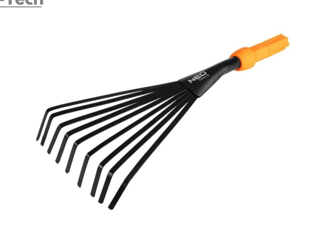 Malé vejárové hrable NEO Click System 95-075 od spoločnosti NEO TOOLS sú praktické hrable, ktoré patria do systému NEO Click System - série záhradného náradia s vymeniteľnými rukoväťami, vďaka čomu sú úsporné pri skladovaní, úsporné a viacúčelové. Hráble sú vybavené hrotmi s hrúbkou 0,9 mm a odporúčajú sa na prípravu pôdy, starostlivosť o trávnik alebo odstraňovanie buriny. Ich dĺžka 330 mm a šírka pracovnej časti 125 mm uľahčujú vykonávanie úloh. Výroba z uhlíkovej ocele a PP nástavec prispievajú k viacsezónnej životnosti. Malé vejárové hrable NEO TOOLS sú výrobkom, ktorý sa osvedčí v každej záhrade.