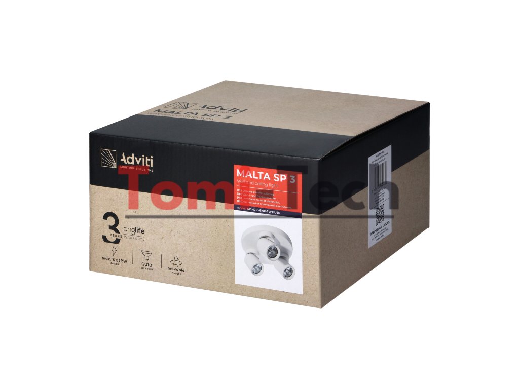 MALTA SP 3, nástenno-stropné svietidlo, GU10 max. 3x12W, IP20, biele, okrúhla päticaDodatočné parametre