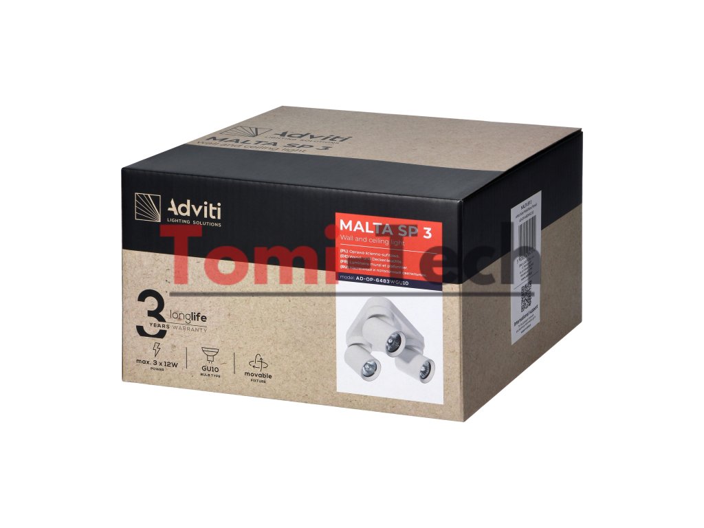 MALTA SP 3, nástenno-stropné svietidlo, GU10 max. 3x12W, IP20, biele, trojuholníkový podstavecDodatočné parametre