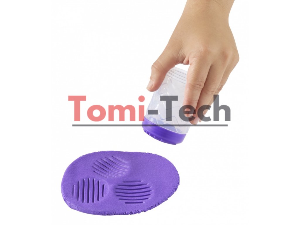 Obsahuje: 1 tubu piesku a 1 tubu hliny, 2 viečka s rôznymi pečiatkami na vašu hlinu a piesok a 1 spojku so vzormi na pečiatkovanie do hliny a/alebo piesku.