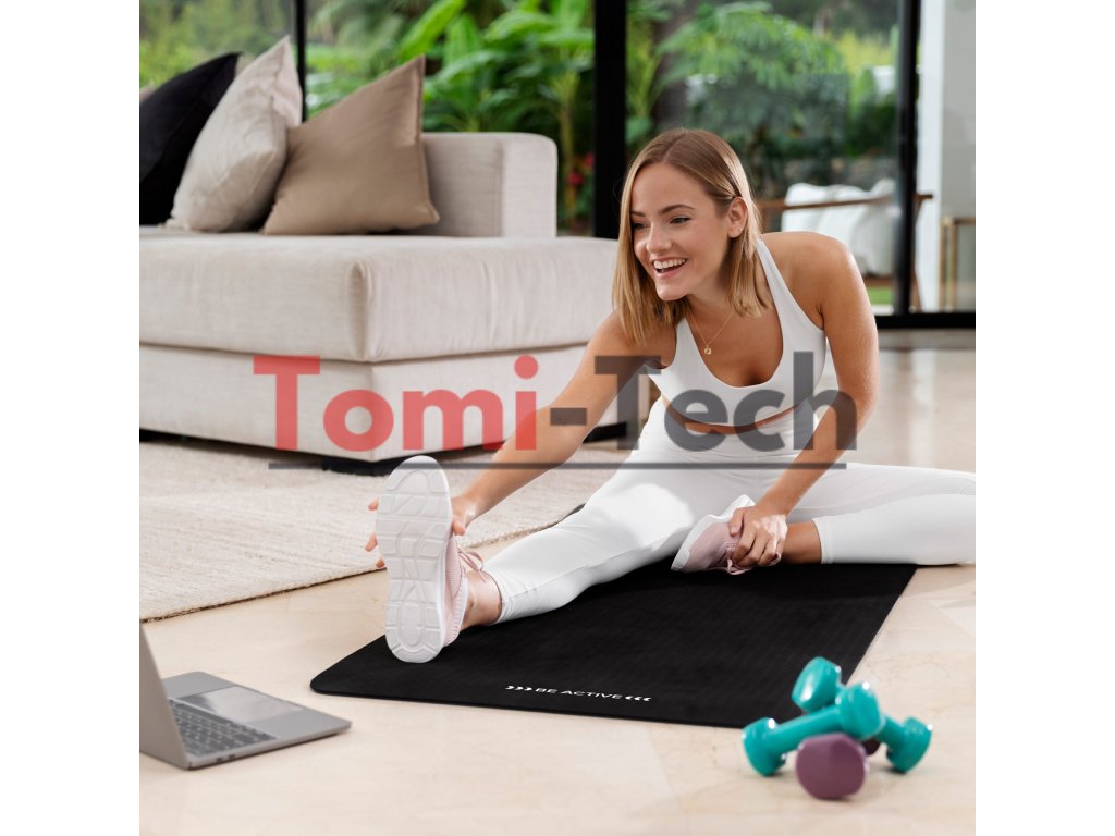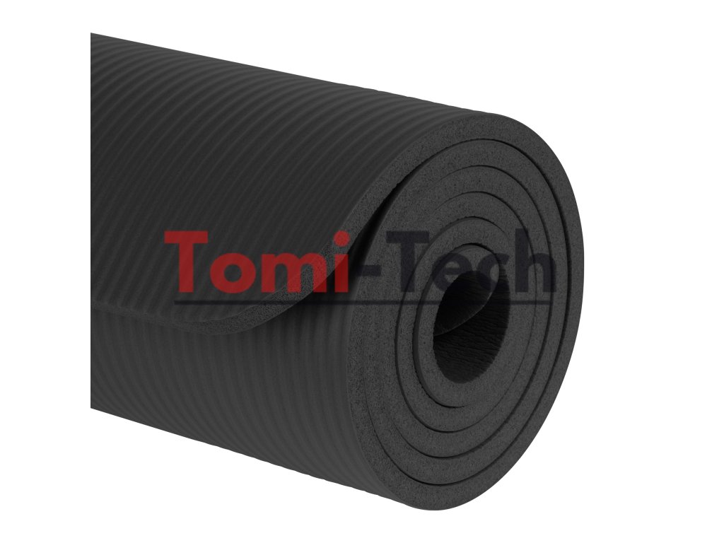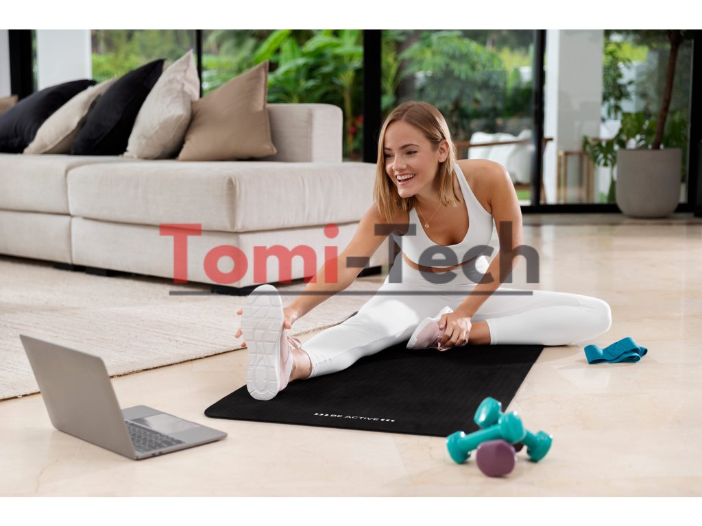 Gymnastická podložka na jogu, pilates, fitness, 183x61cm, hrúbka 1cm, materiál NBR, čierna, REBEL ACTIVE