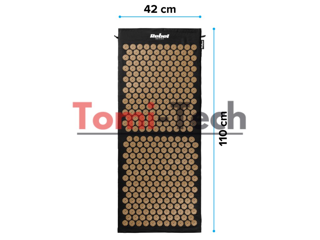Hrotovitá podložka Rebel Active s rozmermi 110 × 42 × 2 cm pokrýva celý chrbát, spodnú časť chrbta a stehná a poskytuje komplexné precvičenie tela. Pohodlná na použitie doma, v kancelárii alebo na cestách – jednoducho ju rozložte na podlahu, pohovku alebo posteľ. Vďaka ideálnym proporciám zaručuje maximálne účinky a rýchlu relaxáciu.
