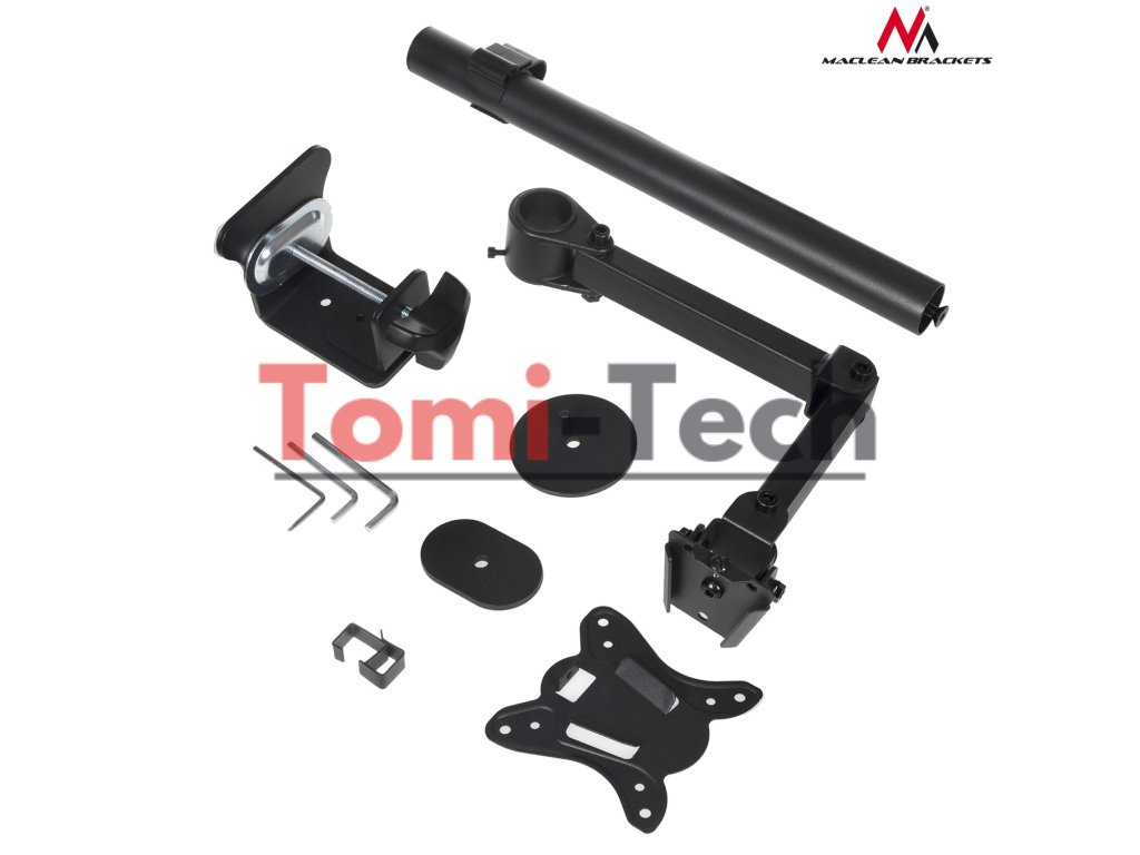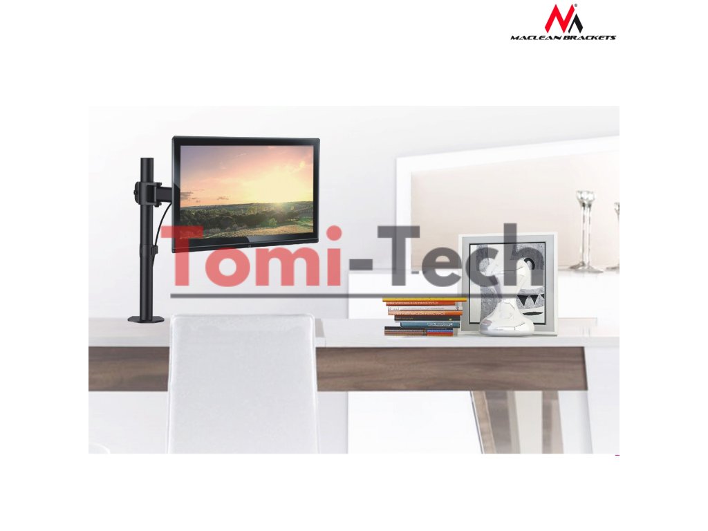 Ramienko Maclean MC-690 pre LCD monitor poskytuje veľký komfort pri práci, optimalizuje ergonómiu a výhľad z monitora nastavením uhla sklonu, výšky atď. Rameno je vyrobené z vysoko kvalitnej ocele - je vybavené odolnou montážnou svorkou, ktorá umožňuje montáž na dosku stola alebo iné rovné povrchy. Ideálne na použitie okrem iného v kancelárii aj doma - bez vŕtania otvorov do stolov alebo steny.