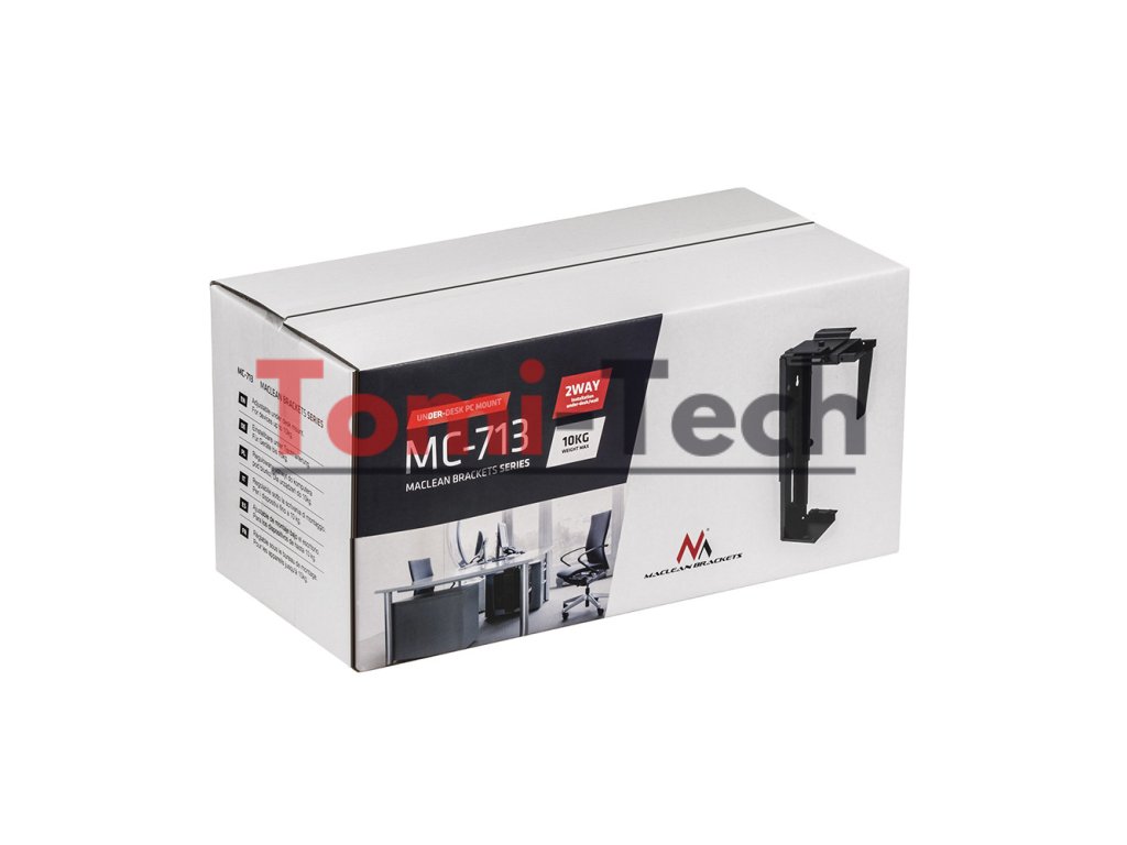 Držiak MC-713 je určený na vertikálnu montáž počítača pod stôl. Je to perfektné riešenie pre optimálne využitie pracovného priestoru.