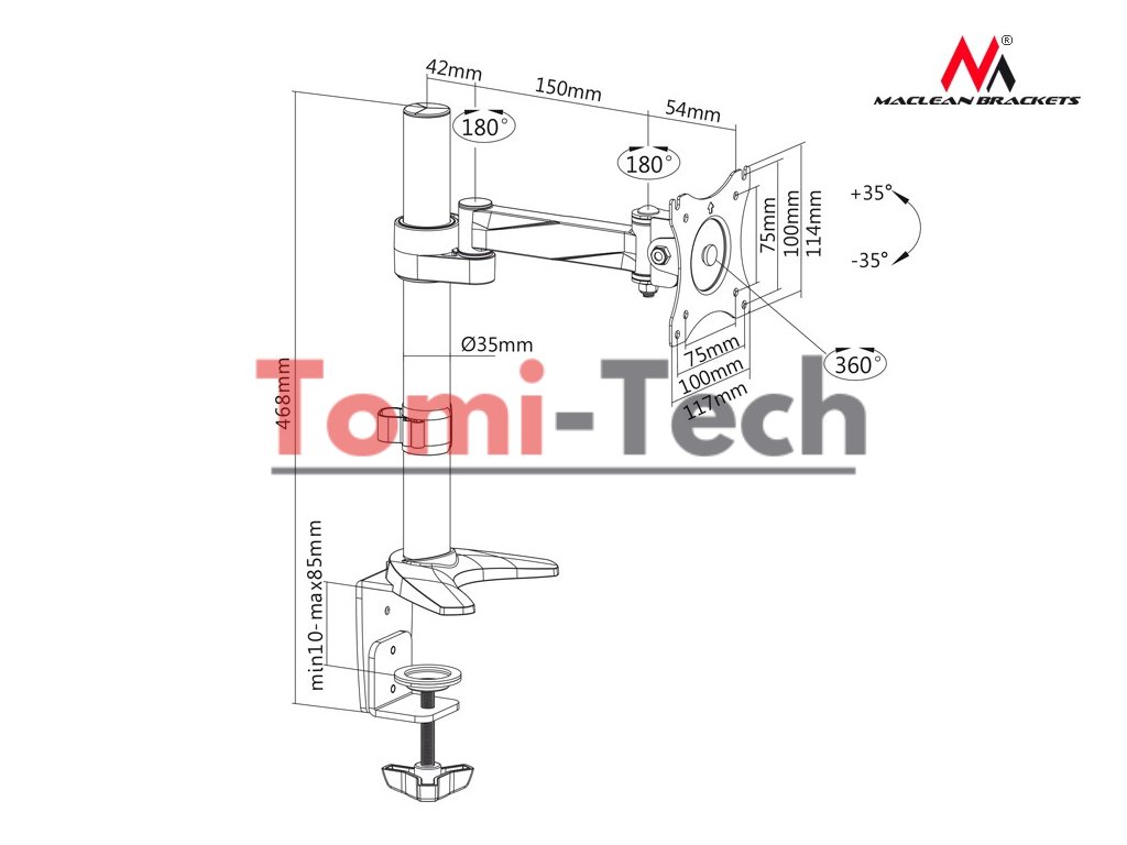 Univerzálny držiak na stôl na ramene sa používa na upevnenie LCD, LED televízorov a monitorov rôznych značiek s hmotnosťou do 8kg a s uhlopriečkou obrazovky od 13" do 27"