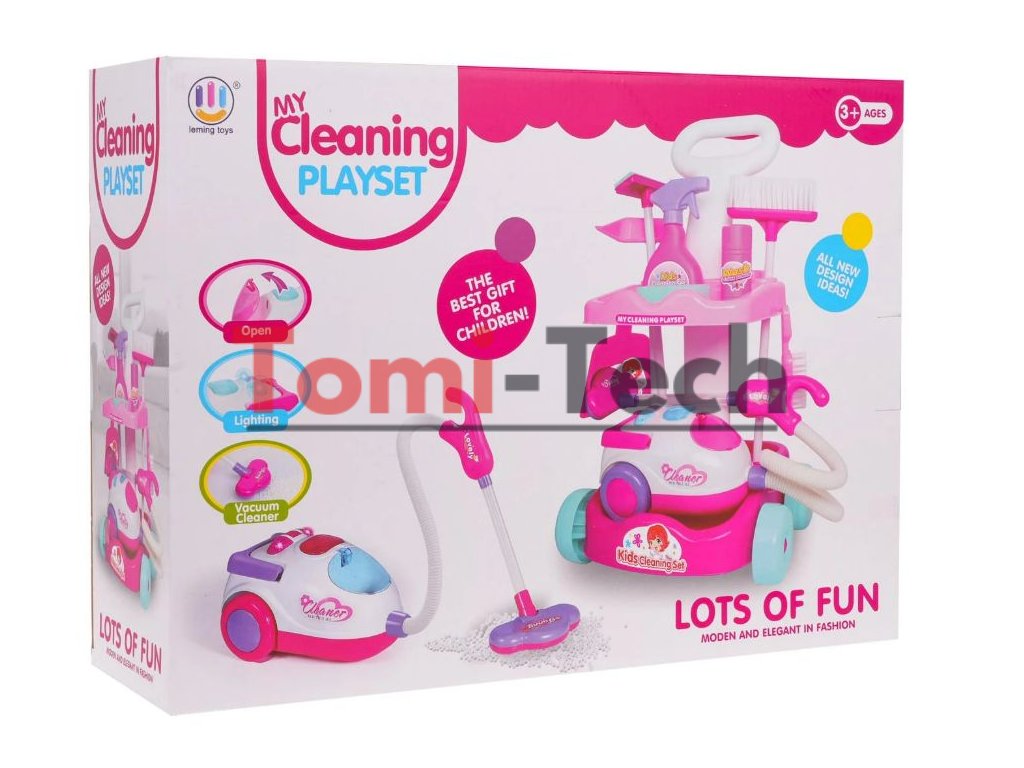 Objavte mega upratovací set s interaktívnym vysávačom pre deti. Tento súprava je ideálna pre deti od 3 rokov a je vyrobená z prvotriedneho plastu vo veselých farbách. Zahŕňa vozík s madlom na tlačenie a kolieskami, interaktívny vysávač, metličky a ďalšie doplnky na upratovanie.Interaktívny vysávač si vyžaduje batérie typ 3 x AA 1,5 V (nie sú súčasťou balenia), vydáva zvuky vysávania, má osvetlenie a zbiera malé nečistoty z povrchu.
