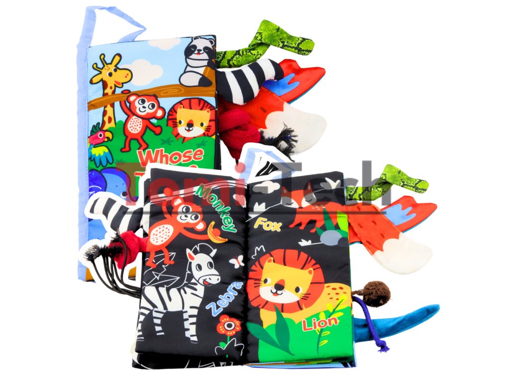 Mäkká vzdelávacia knižka je ideálnou hračkou pre najmenšie deti, ktorá podporuje zmyslový a kognitívny vývoj. Vyrobená z bezpečných, mäkkých materiálov, je príjemná na dotyk a bezpečná pre citlivú pokožku bábätiek. Zvrásnené stránky a vyčnievajúce zvieracie chvosty rôznych textúr a farieb stimulujú zmysly dieťaťa, rozvíjajú jeho zvedavosť a manuálne zručnosti. Farebné ilustrácie zvierat, ako sú zebra alebo žirafa, povzbudzujú k učeniu a hre. Kniha je ľahká a praktická, ideálna na výlet alebo prechádzku.